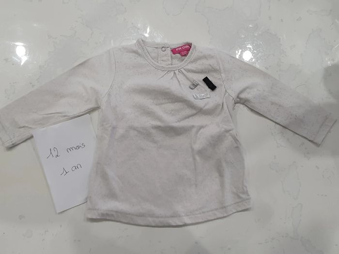T-shirt manches longues en très bon état, effet moucheté. #amandine38480fille12mois1an