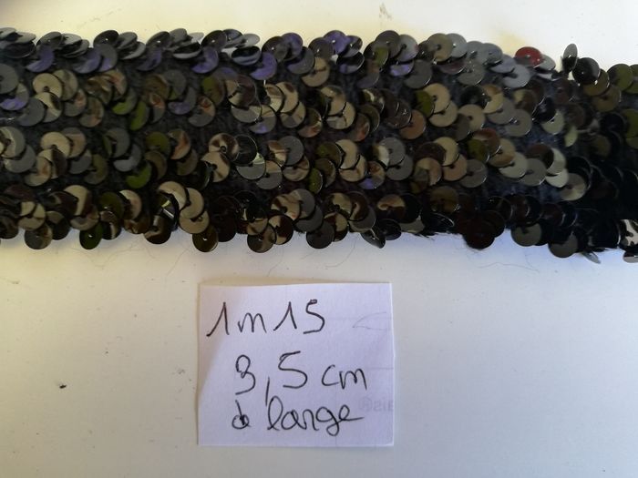 1mètre 15 de ruban sequins élastique noir pour loisirs créatifs, couture ou autre. 1euros15 Envoie en mondial relay
