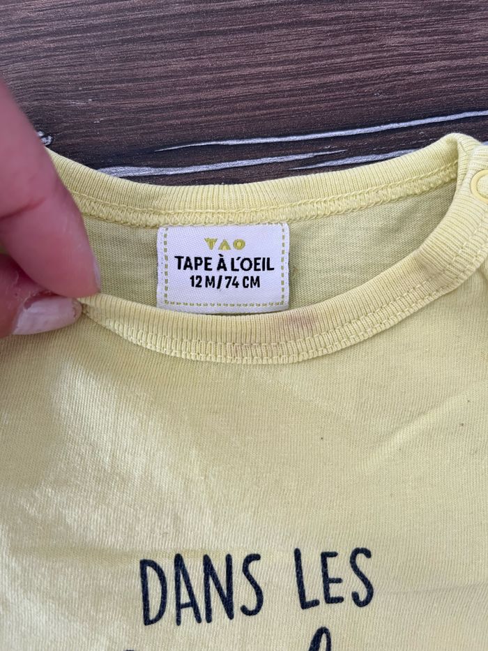 Très bon état (petite tâche discrète sur le col du jaune voir photo) Tape À l’Oeil, l’autre je ne sais plus 12 mois - 74cm