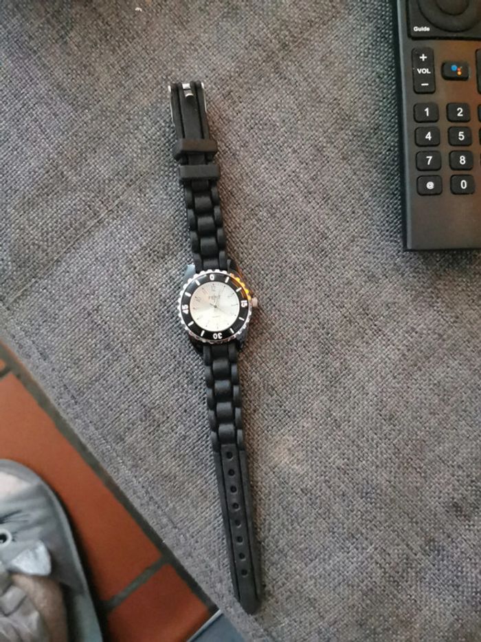 Montre noir. Bracelet en silicone noir La pile ne fonctionne plus, je ne l'ai pas changé