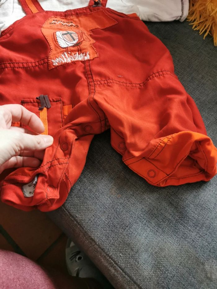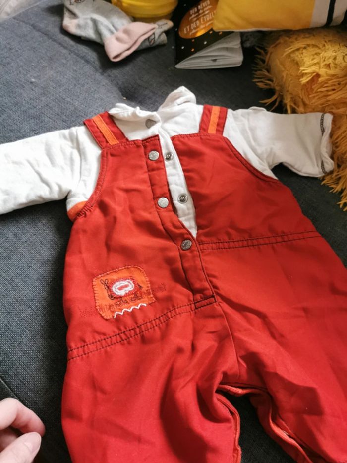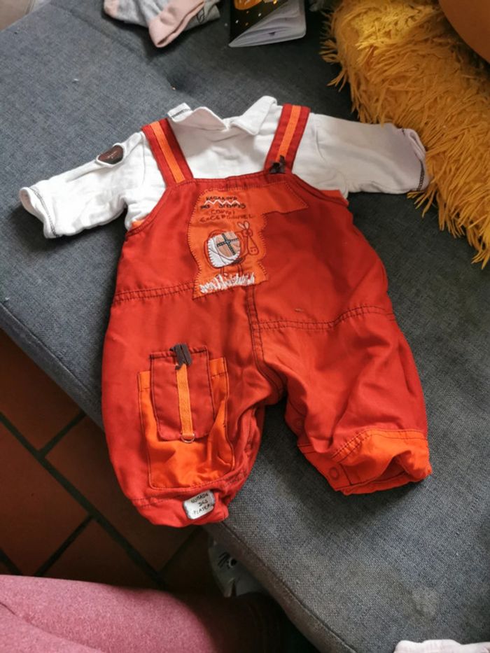 Salopette bébé taille 1 mois rouge et blanc crème. Attention petite tache sur la manche mais qui part au lavage je pense. N'hésitez pas à me demander, j'ai d'autres vêtements de toute taille si vous recherchez quelque chose en particulier