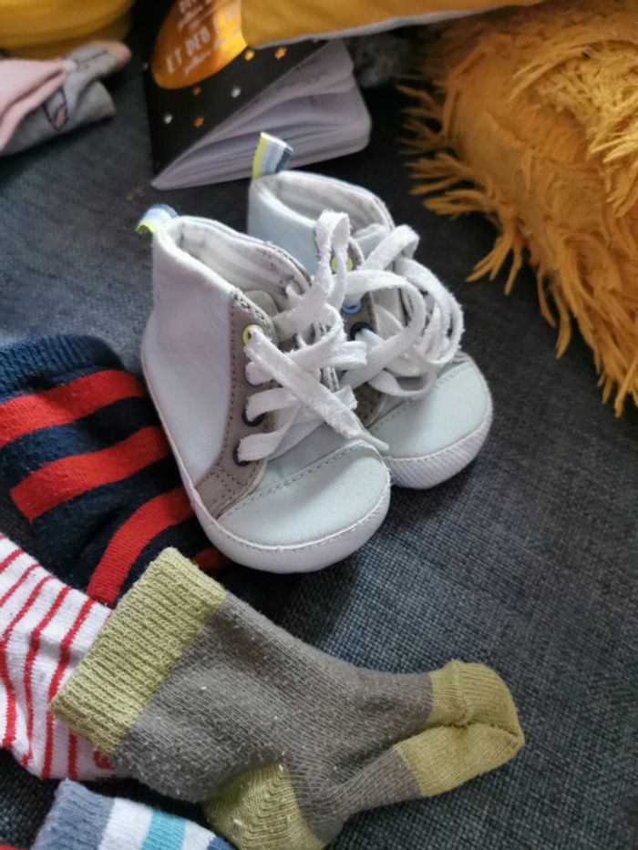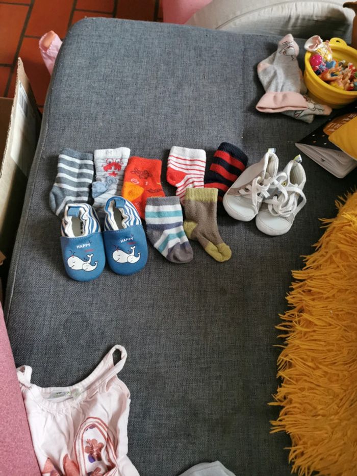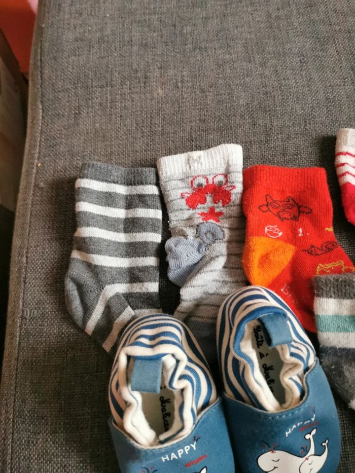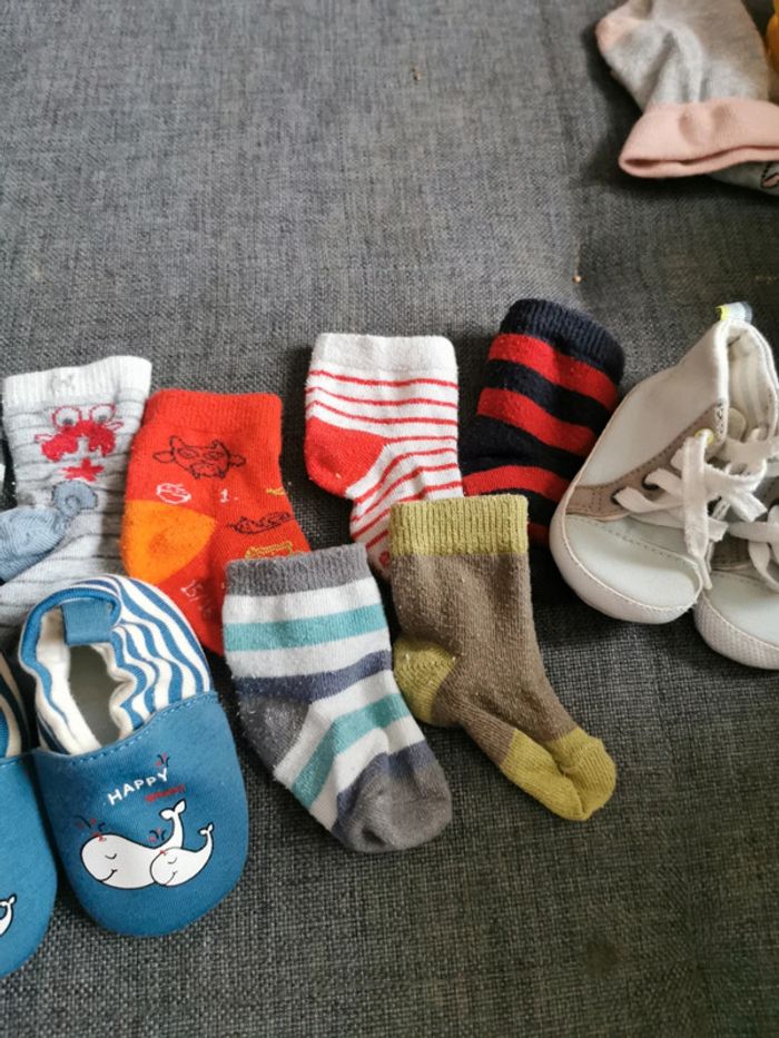 2 paires de Chaussures et 7 paires de chaussettes taille 1 à 3 mois.