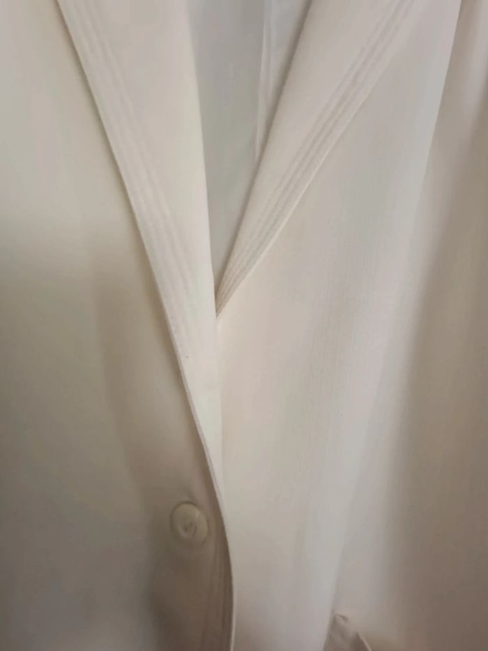 Très belle veste t.50. Coloris : blanc cassé. Avec des passants mais sans ceinture. Tissu de bonne qualité. Avec épaulettes. Doublée. Avec un bouton de rechange. Très bon état. Style 80s 90s D'autres belles tenues dans mon dressing : https://www.vinted.be/member/23077156-eleanoraur Réduction sur les lots. Envoi rapide, format petit colis.