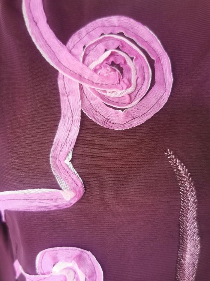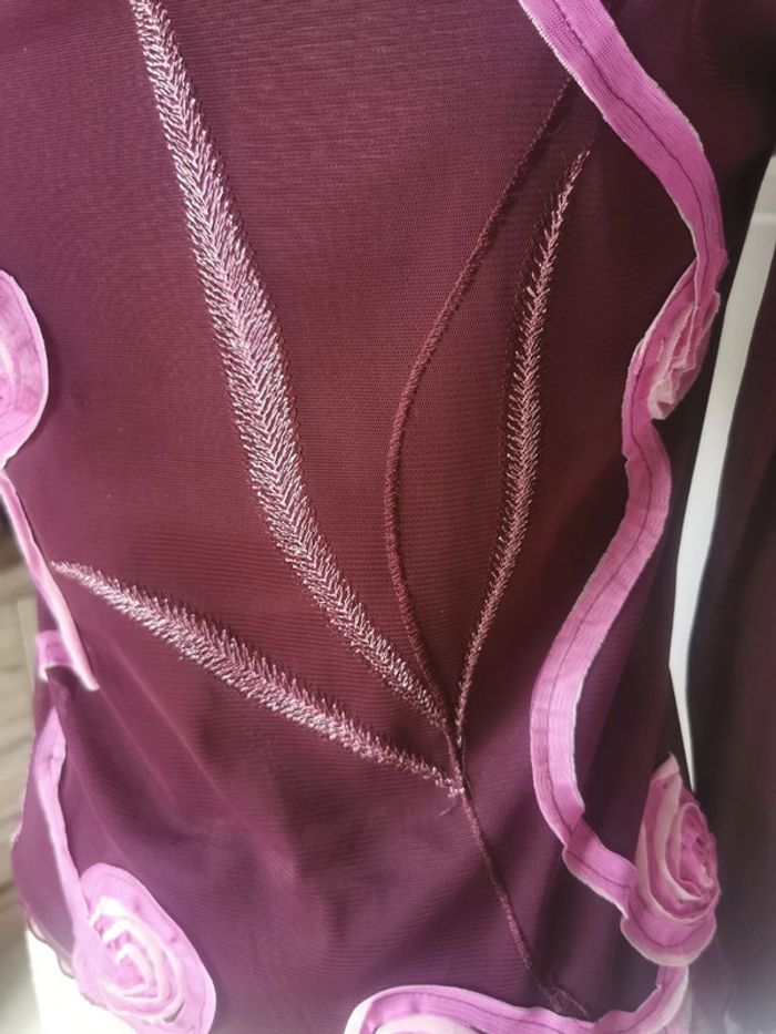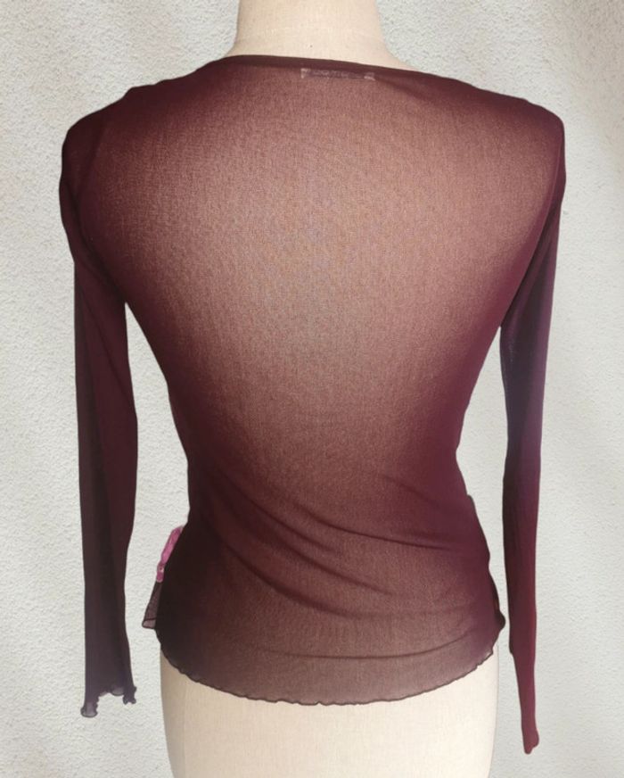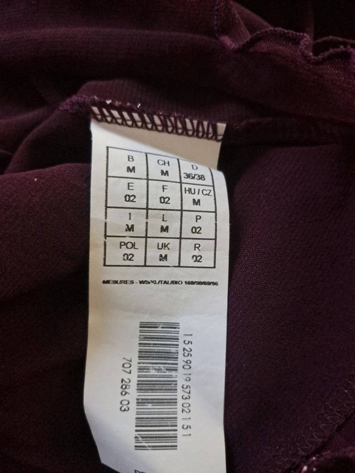 Haut très élégant en voilage. Doublée sur le devant. Manches longue. Très agréable à porter. Coloris : aubergine. Marque : Promod