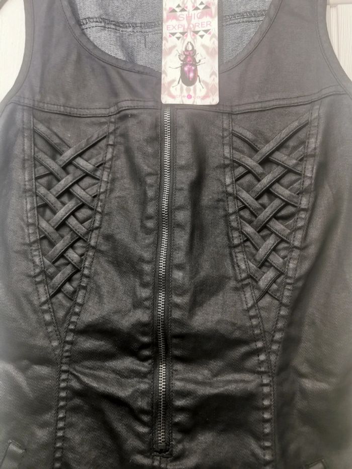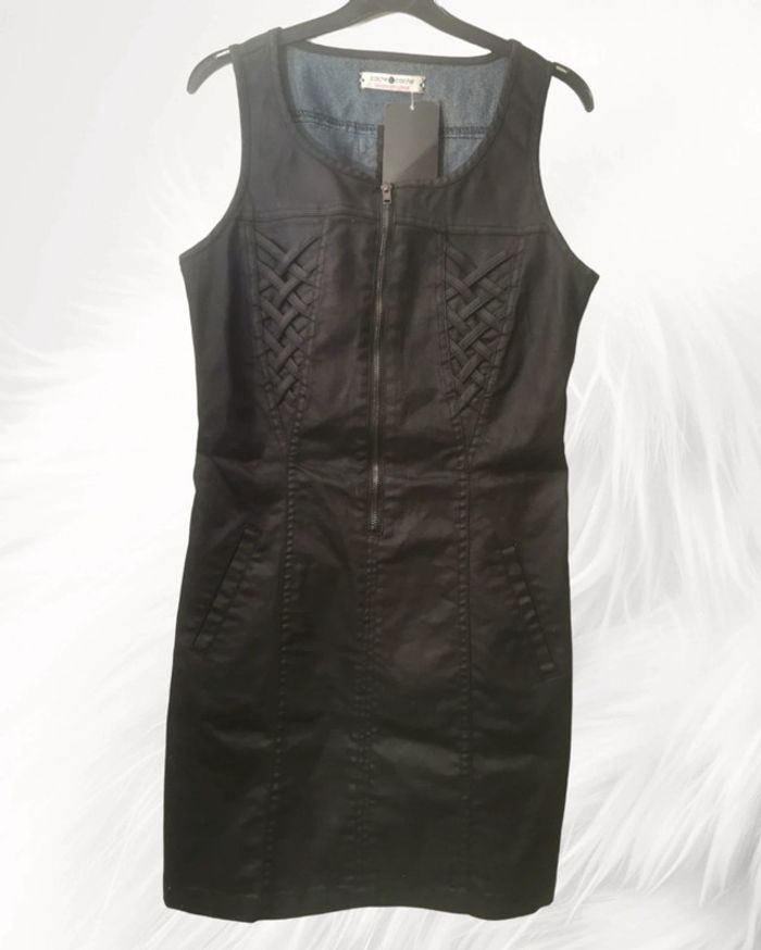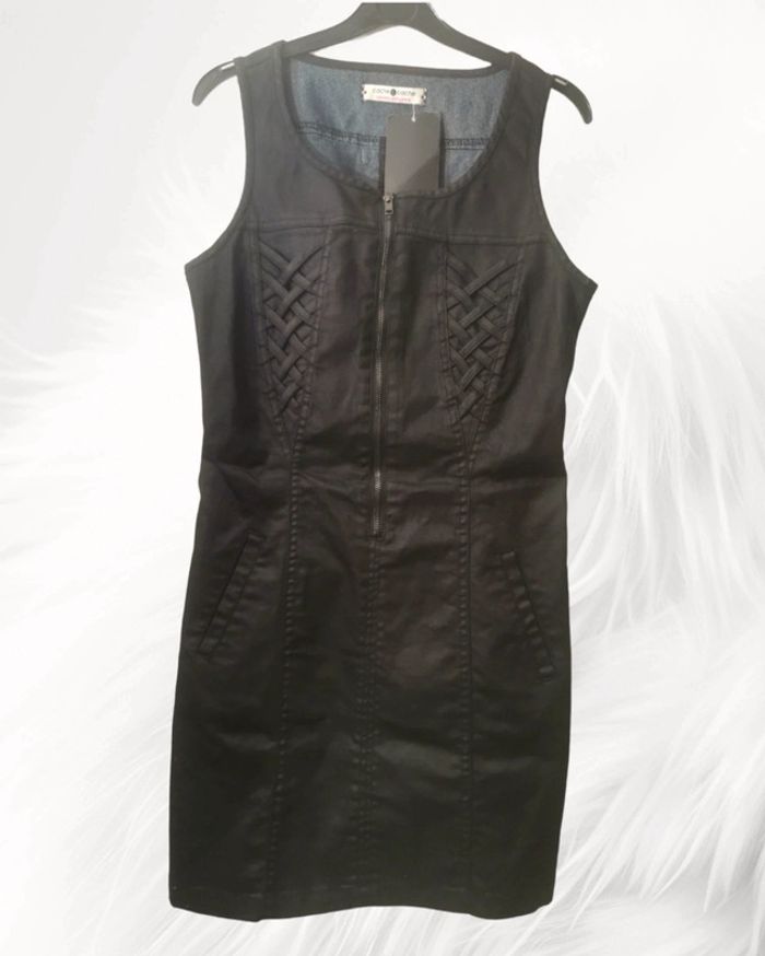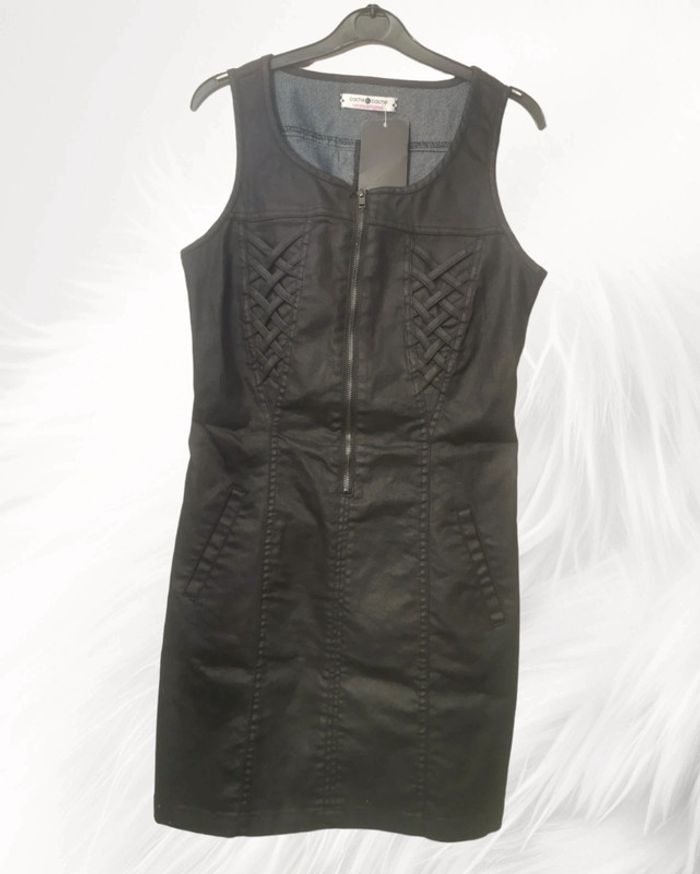 NEUVE Sans manche. Zippée sur le devant. 78% coton - 21% polyester Longueur : +- 85 cm. Largeur sous aisselles : +- 44 cm. #robenoire #robesexy #robe38 #cachecache38 #cachecache #sansmanche #robedroite #robeneuve #fashionstyle #zippé #robezippée #y2k #y2kstyle #y2kfashion #y2kaesthetic #blackdress #black #vestitodonna #vestitonero #vestito38 #cuir #simili #coton #cotton