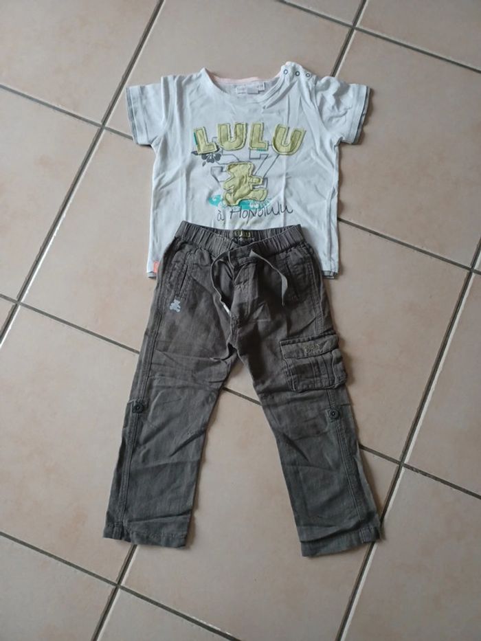 Ensemble pantalon en lin et tee shirt " lulu castagnette " en parfait état taille 3 ans