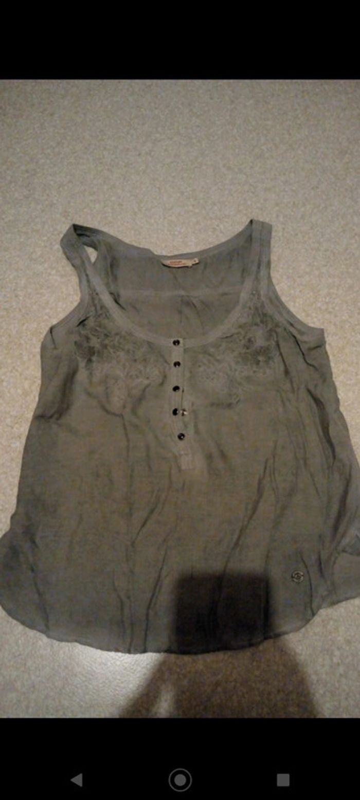 Débardeur gris délavé motifs fleuris DDP - photo numéro 1
