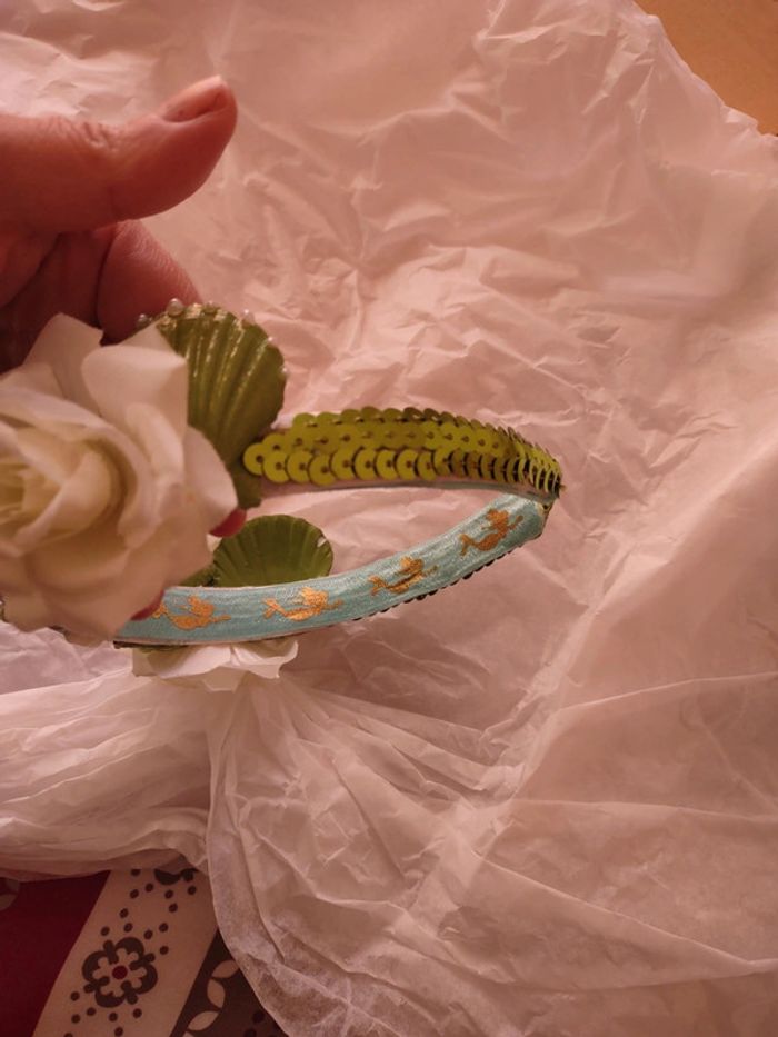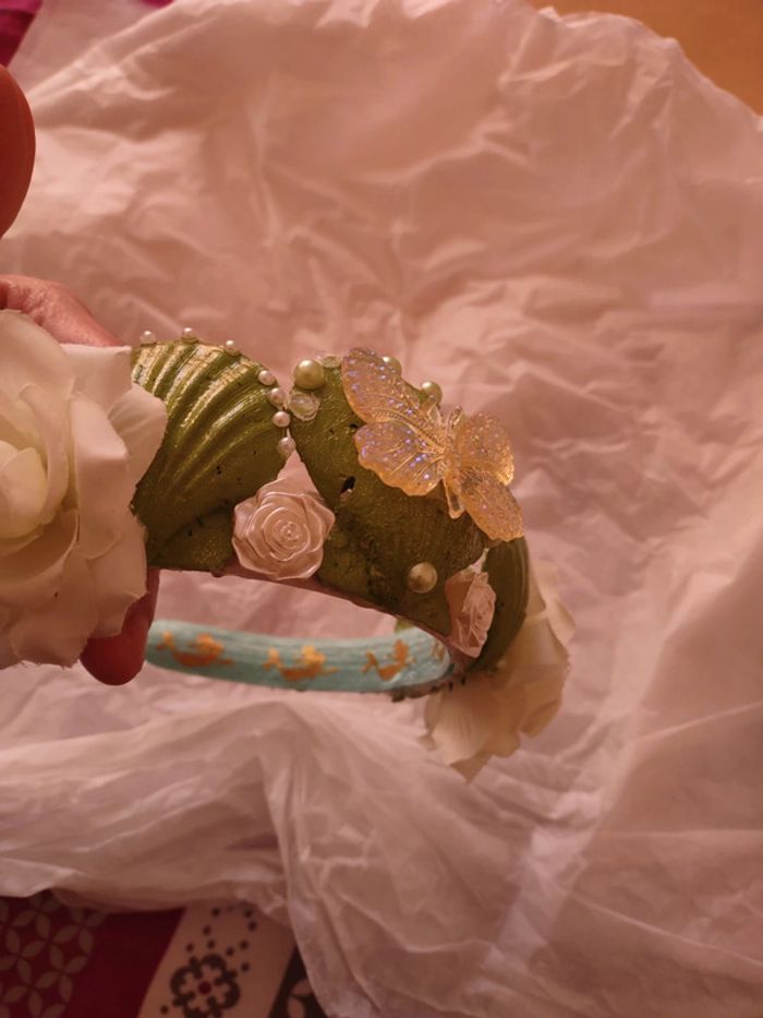 Couronne 👑 sirène princesse verte et blanche papillons fleurs et strass - photo numéro 2