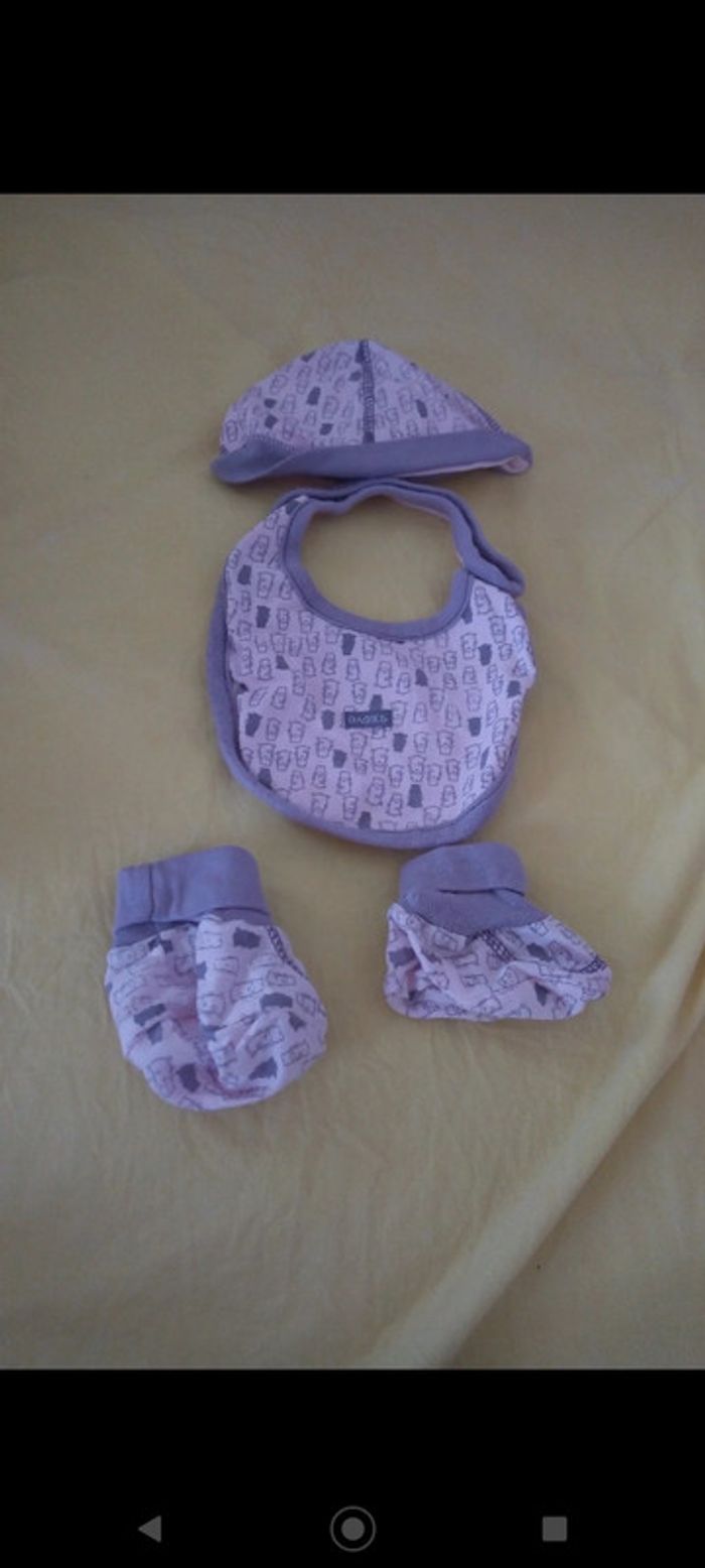 Avec son bonnet, chausson et bavoir