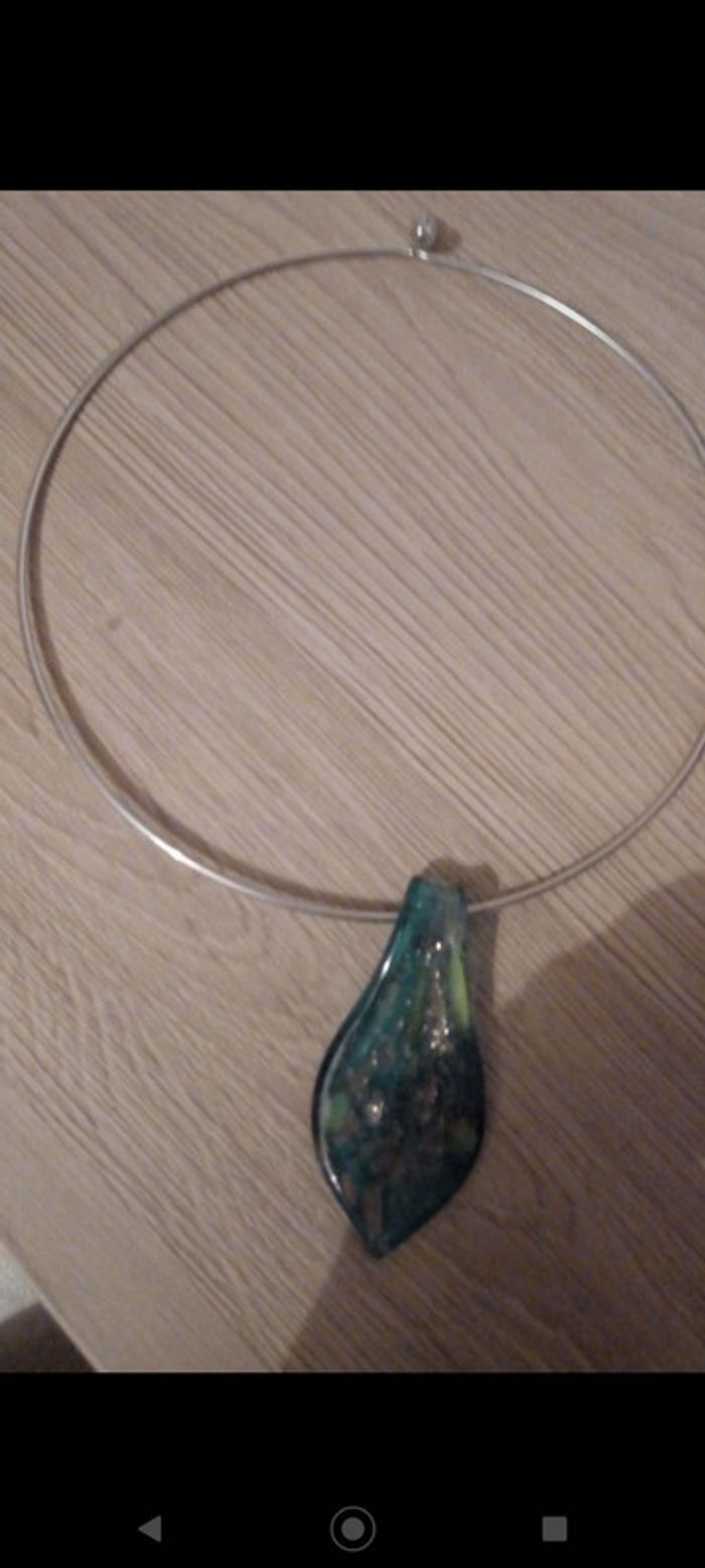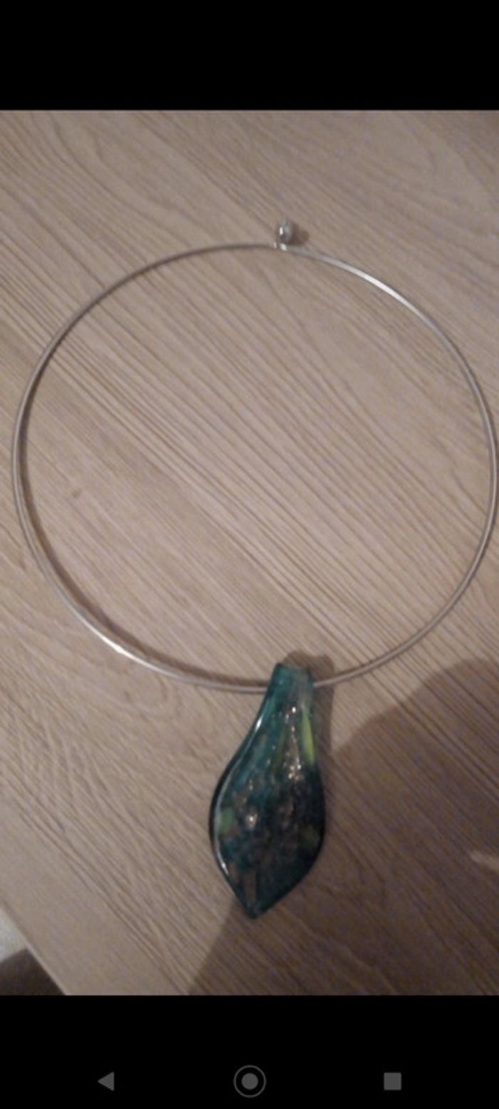 Collier rigide pendentif en verre - photo numéro 1