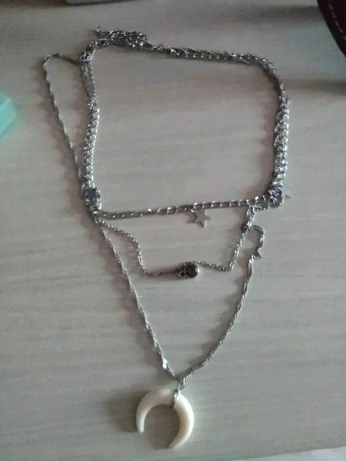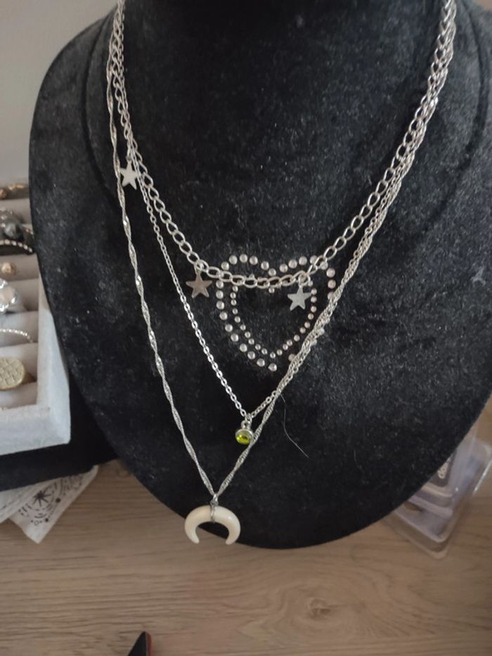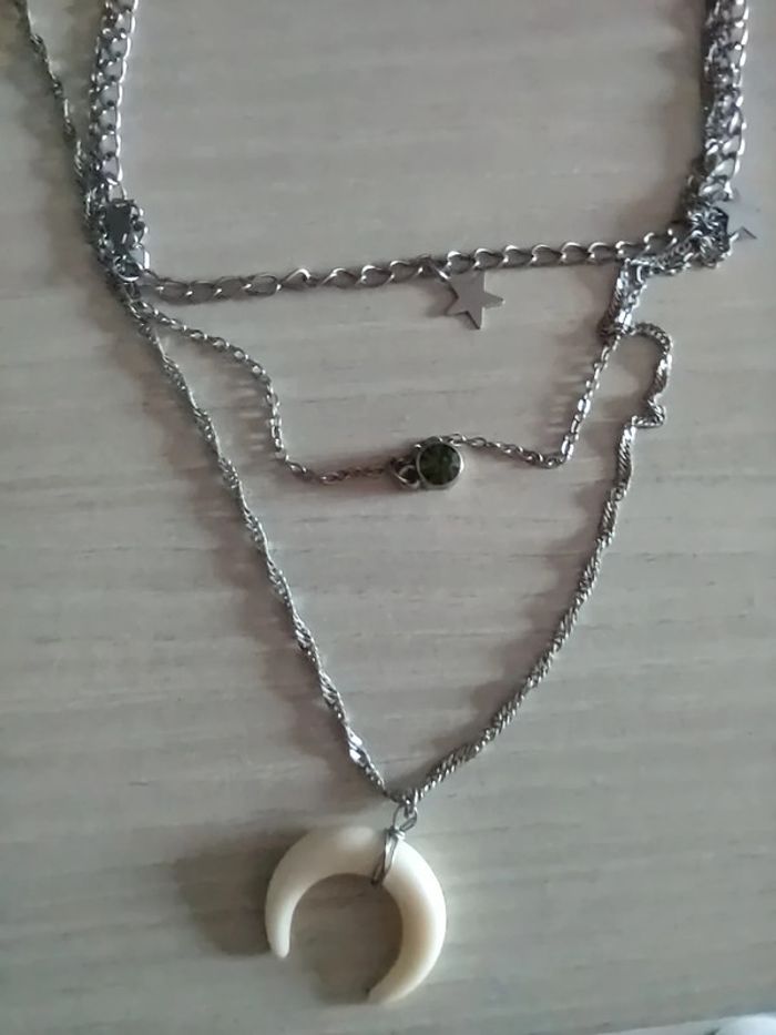 Collier triple rang argenté motif étoiles, corne - photo numéro 1