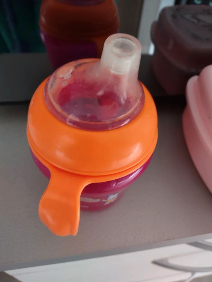Quelques traces d'utilisation sur le bec en silicone Bec silicone anti-fuite Anses amovibles et ergonomiques Capuchon protecteur Entièrement démontable