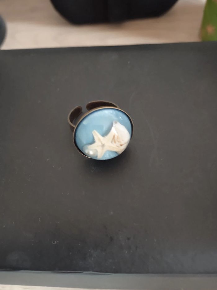 Bague coquillage, étoile de mer et perle en résine - photo numéro 1
