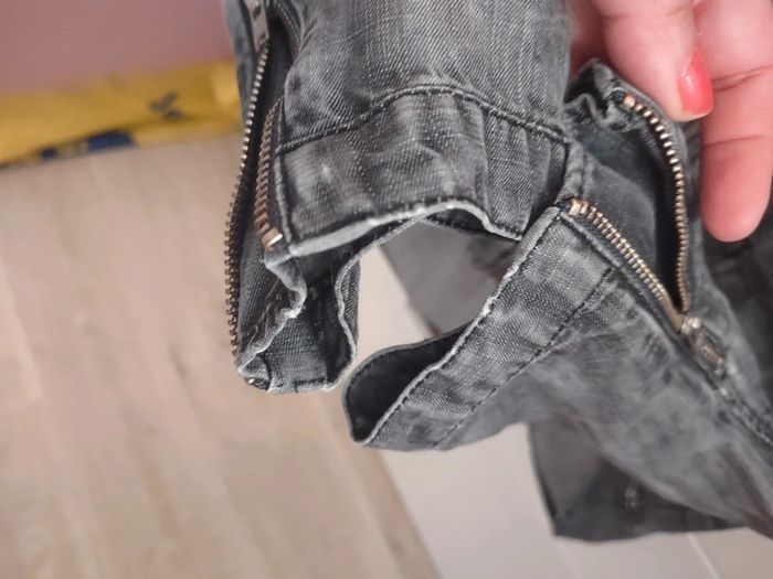 Taille m Gris délavé, peut se porter en veste Un petit défaut cf dernière photo