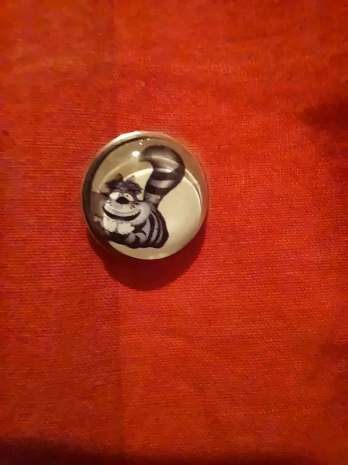 Il me semble que c'est du cuir, vendu avec ses 3 pressions chat dont un chat Alice aux pays des merveilles Comme neuf