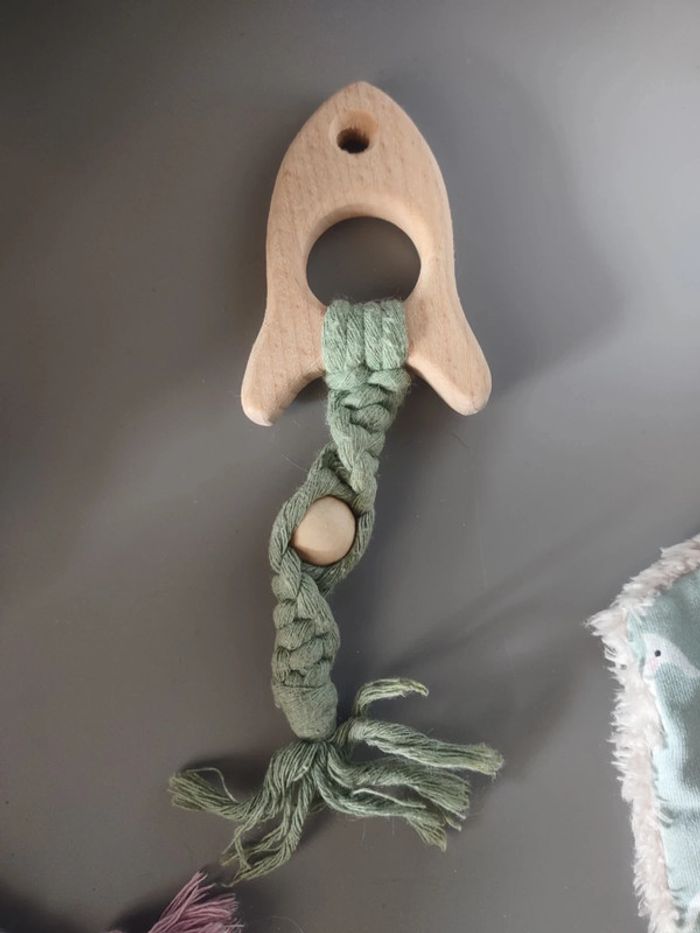 Anneau dentition bois fusée/poisson en macramé - photo numéro 2