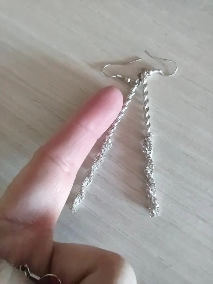 Boucles d'oreilles longues rigides argentées et strass - photo numéro 1