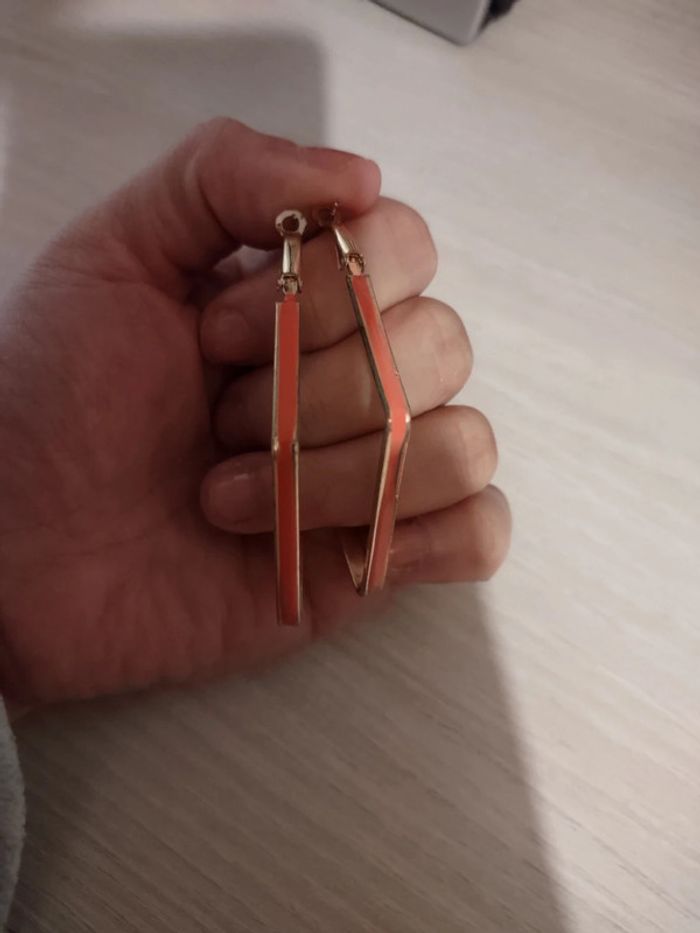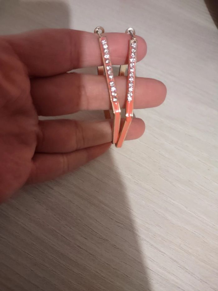 Boucles d'oreilles créoles losange rose et strass - photo numéro 3