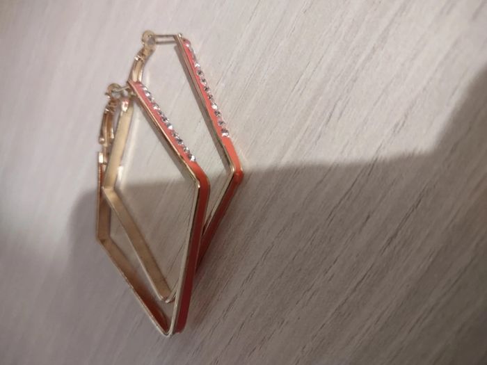 Boucles d'oreilles créoles losange rose et strass - photo numéro 2