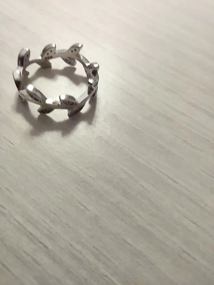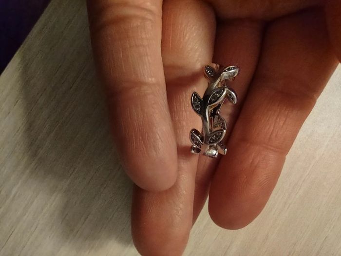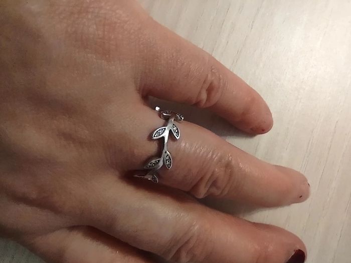Bague anneau contour feuille en argent et pierres zircons - photo numéro 5