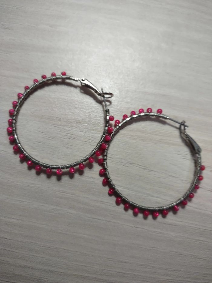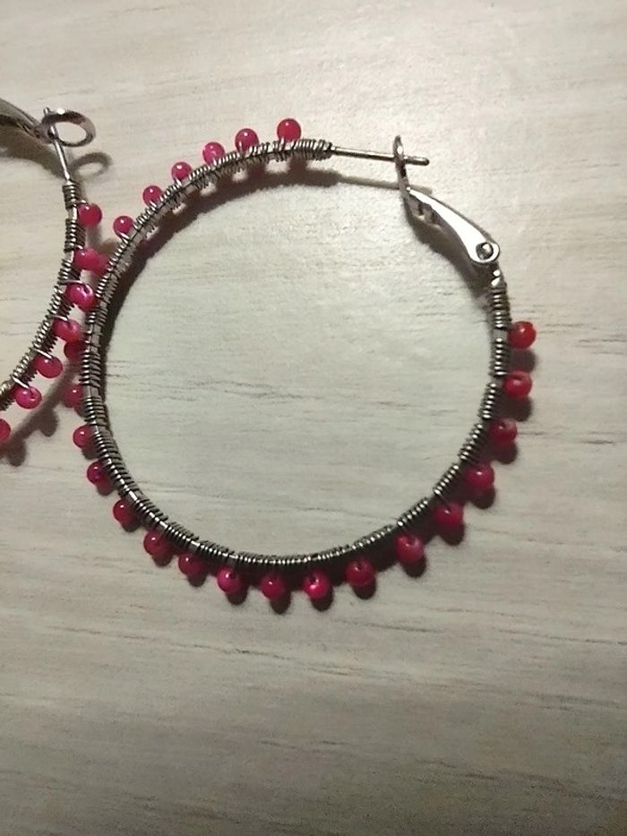 Boucles d'oreilles créoles argentées avec pierres oranges - photo numéro 1