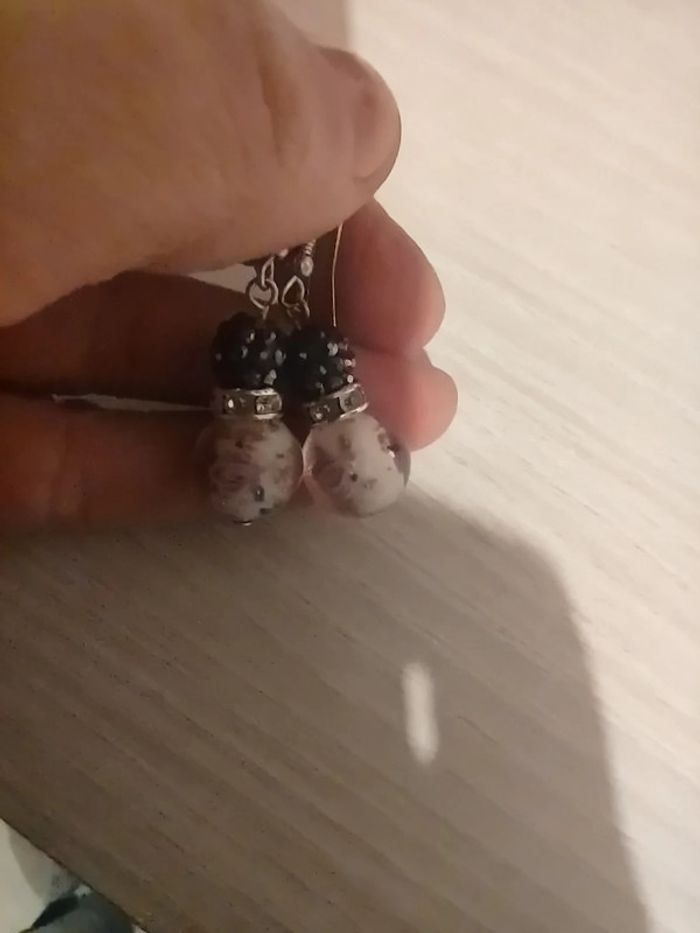 Boucles d'oreilles dormeuses perles noires et verre neuves