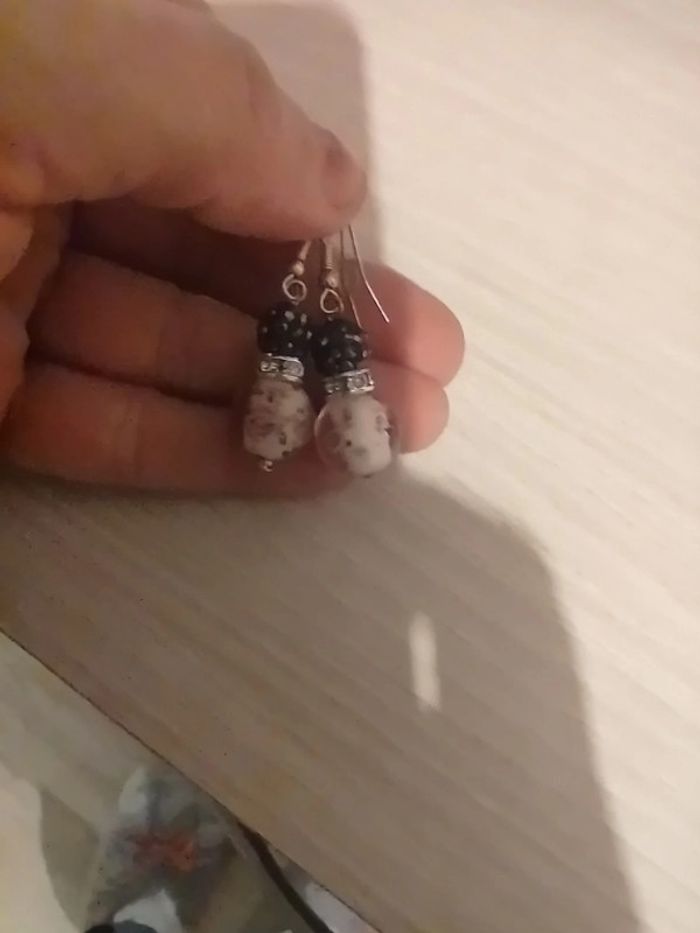 Boucles d'oreilles dormeuses perles noires et verre neuves - photo numéro 1