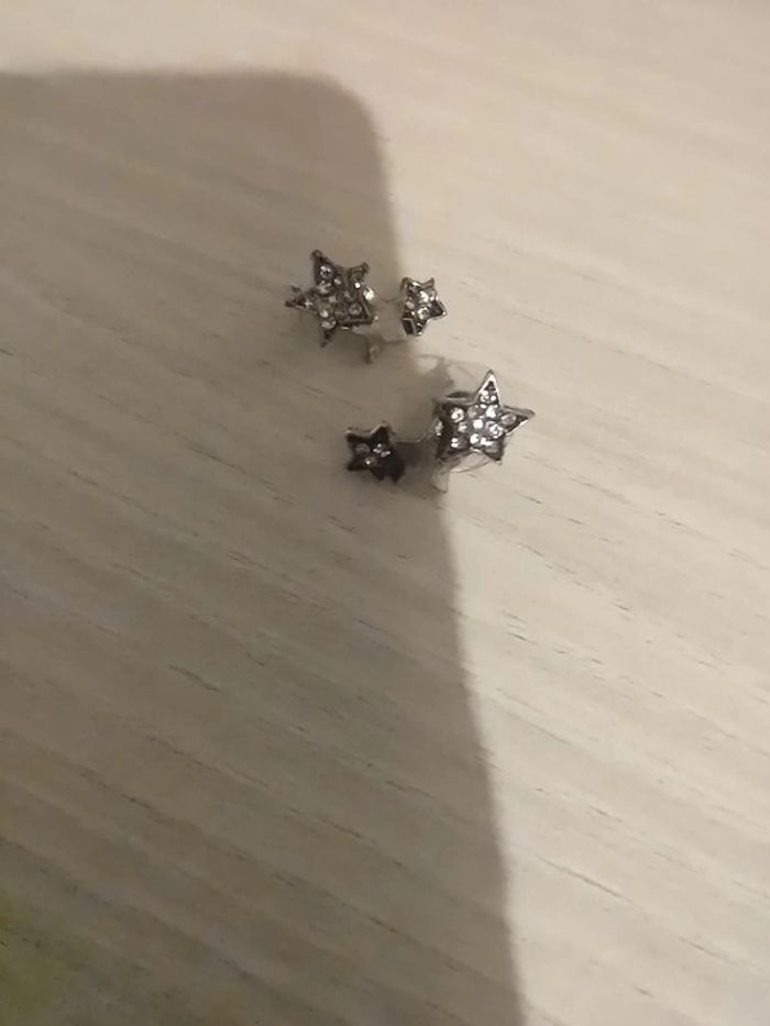 Boucles d'oreilles de lobe ear line étoiles argentées - photo numéro 3