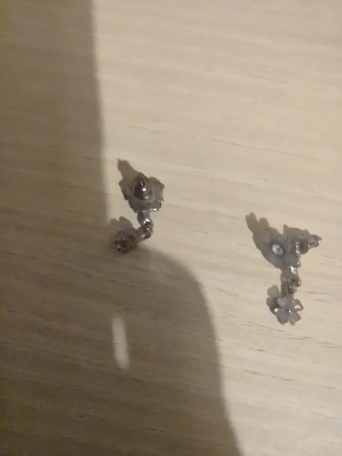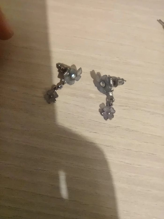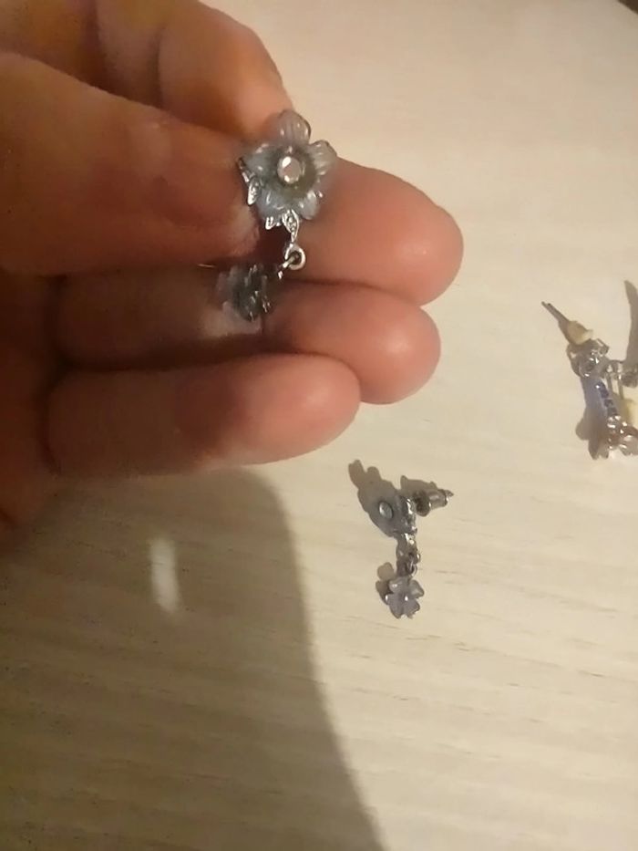 Boucles d'oreilles fleurs bleues argentés - photo numéro 3
