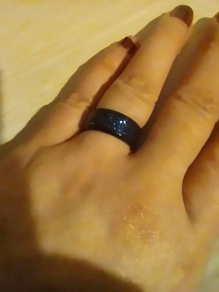 Bague anneau noir bleu nuit paillettes - photo numéro 1