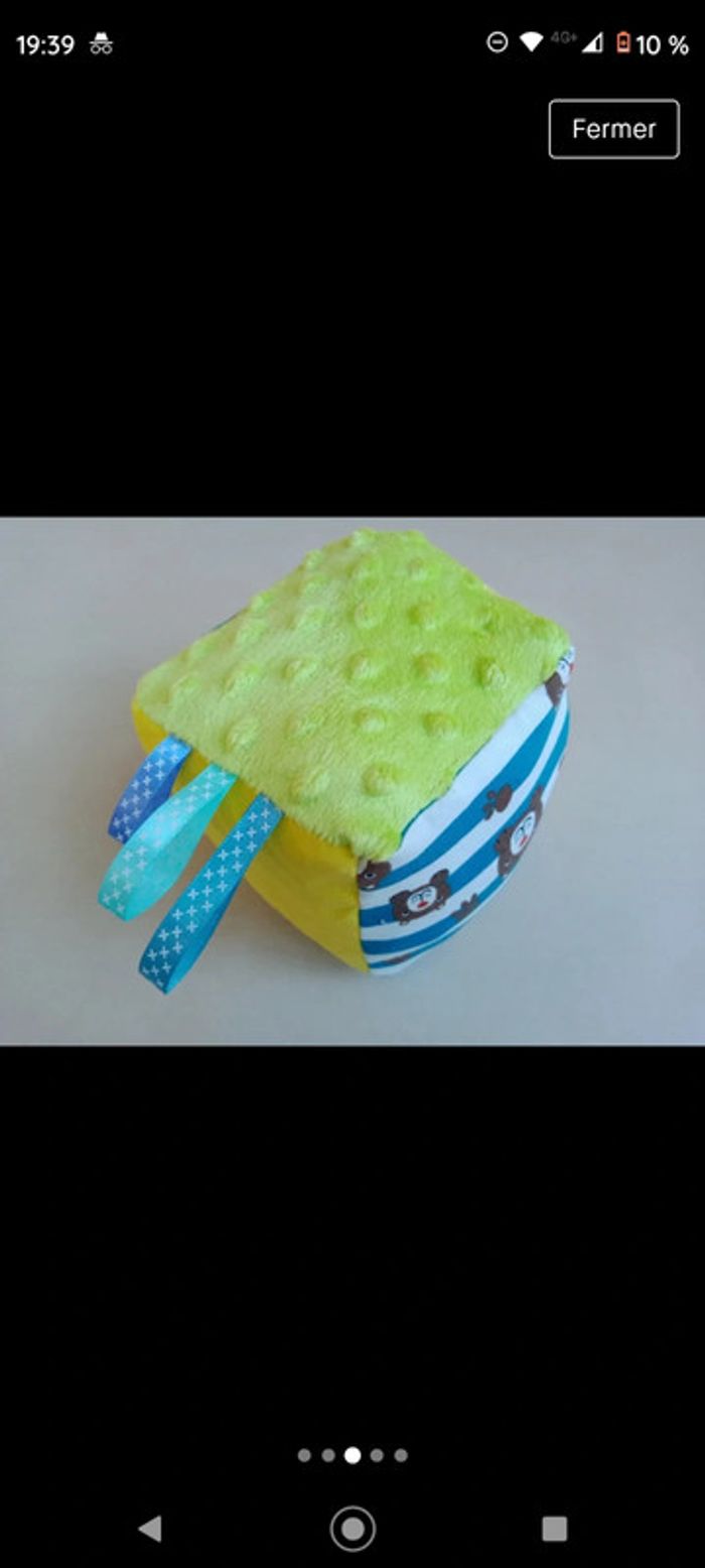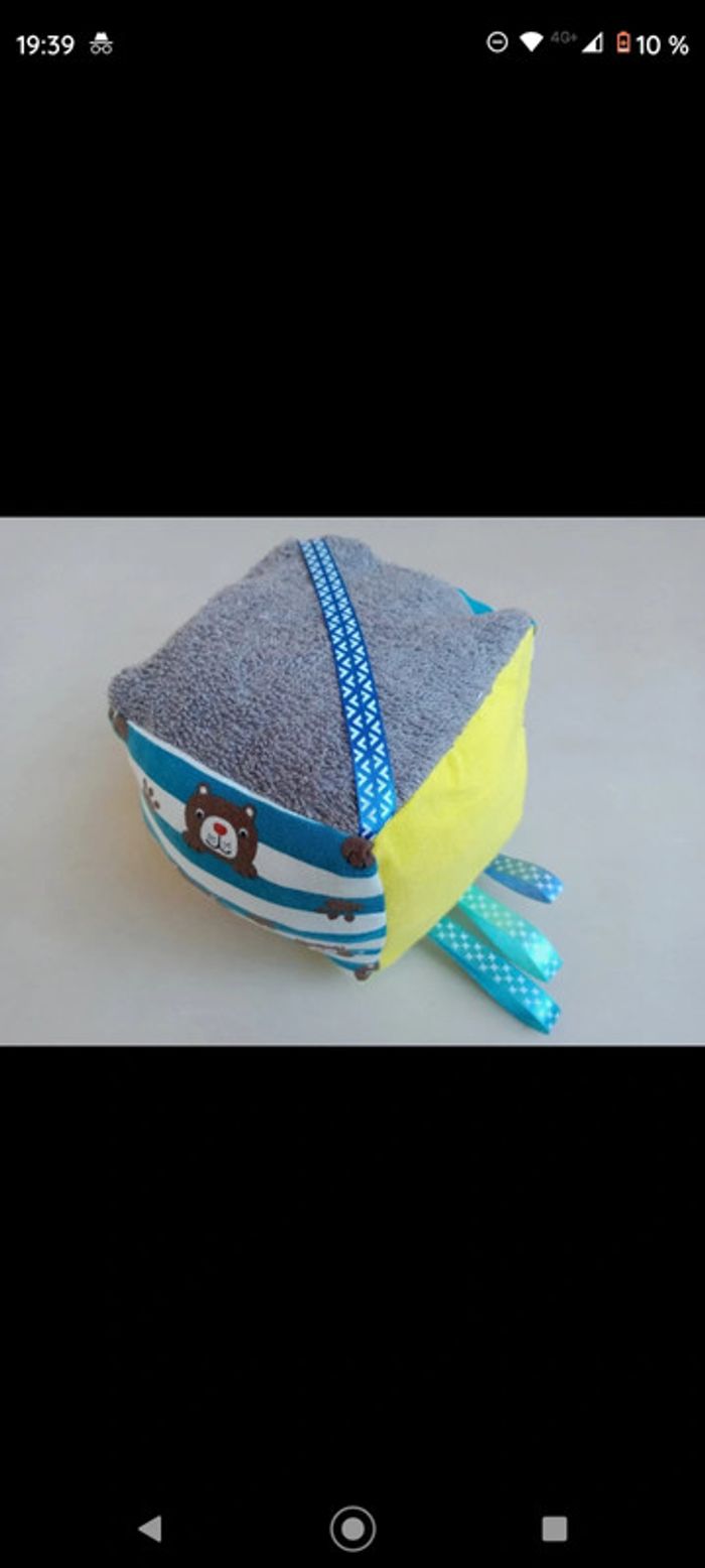 Peu utilisé reste en parfait état Acheté à une couturière, différents ressentis au toucher et sonore Cube environ 10x10 cm
