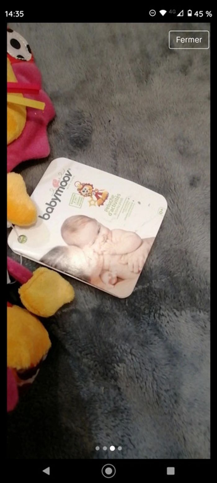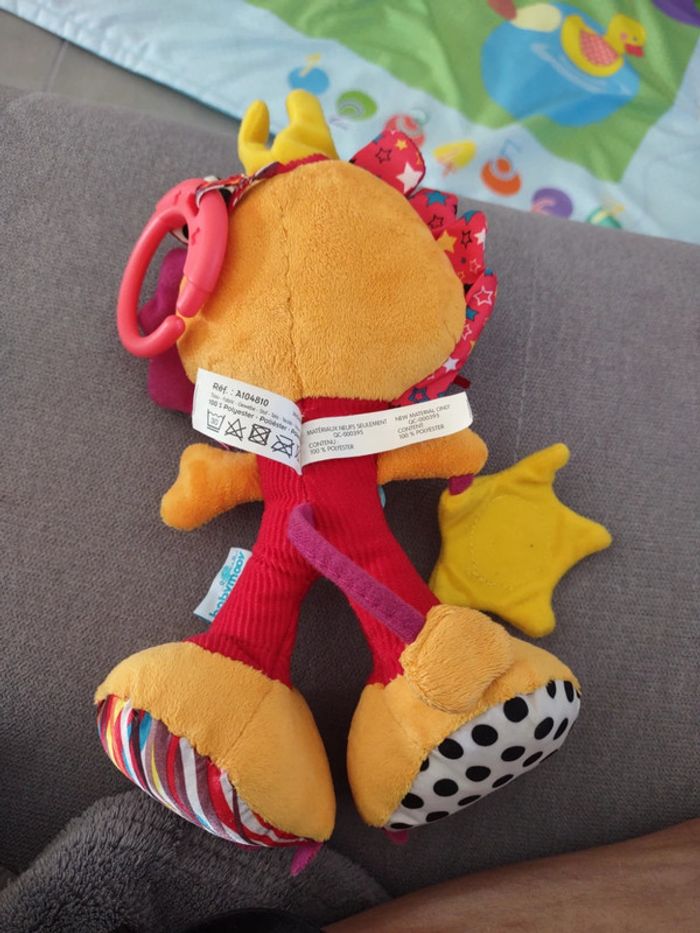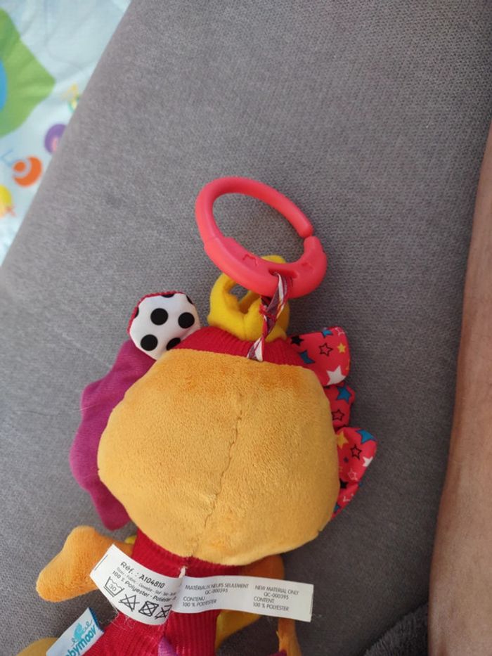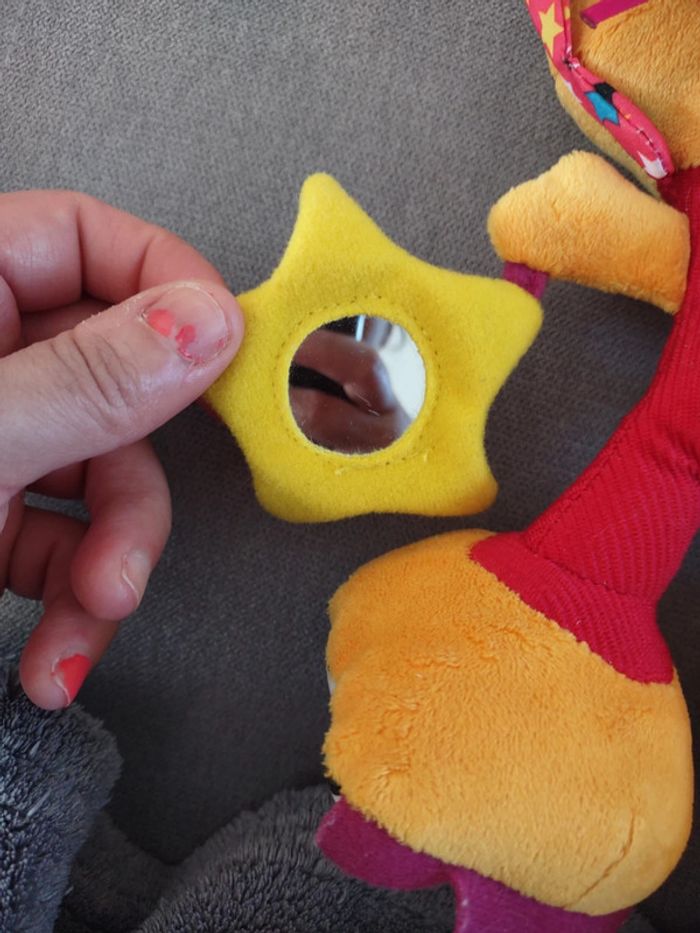 Avec des billes, papier froissé et miroir légèrement rayé cf photo 2 Avec anneau pour accrocher à un tapis d'éveil, transat.... Comme neuve car juste stockée, ma fille ne s'y intéresse pas