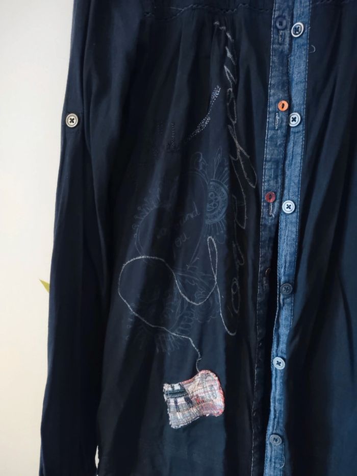 Chemisier noir avec empiècements jean et broderie Desigual - photo numéro 5