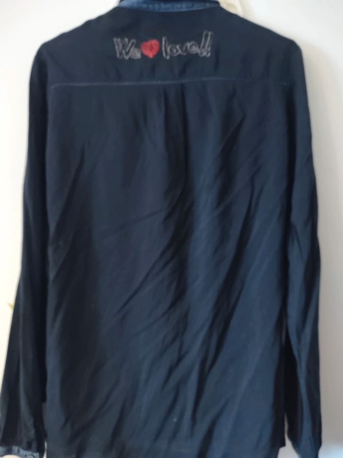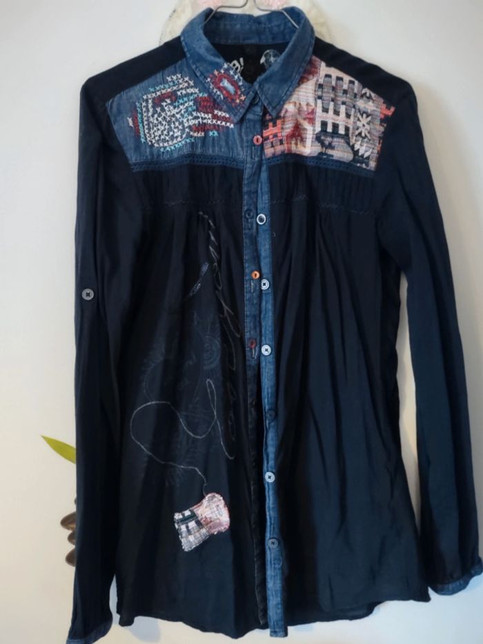 Chemisier noir avec empiècements jean et broderie Desigual - photo numéro 1