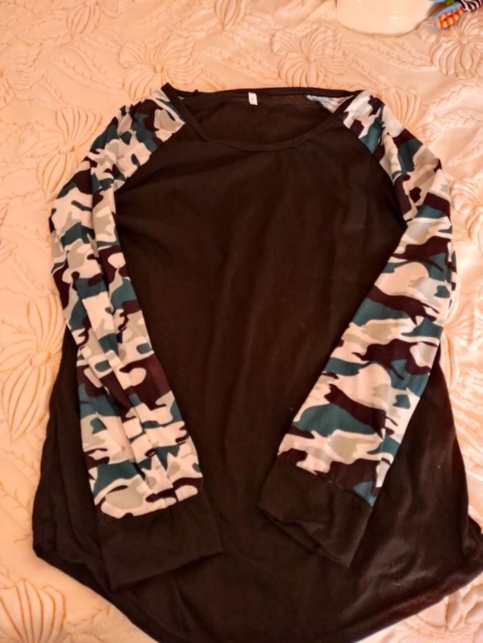 Tee-shirt manches longues noir et militaire aux manches - photo numéro 2