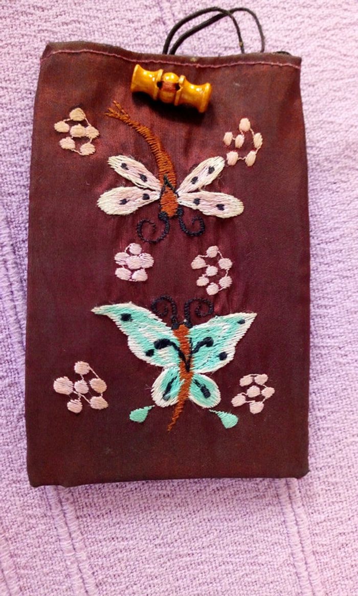 Avec des papillons et lien pour le porter en bandoulière. Pour portable ou autres. Peu utilisé mais traces du au stockage cf dernière photo