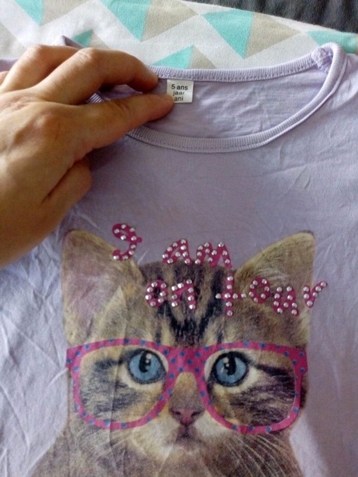 Tee-shirt chat à lunettes avec strass - photo numéro 3