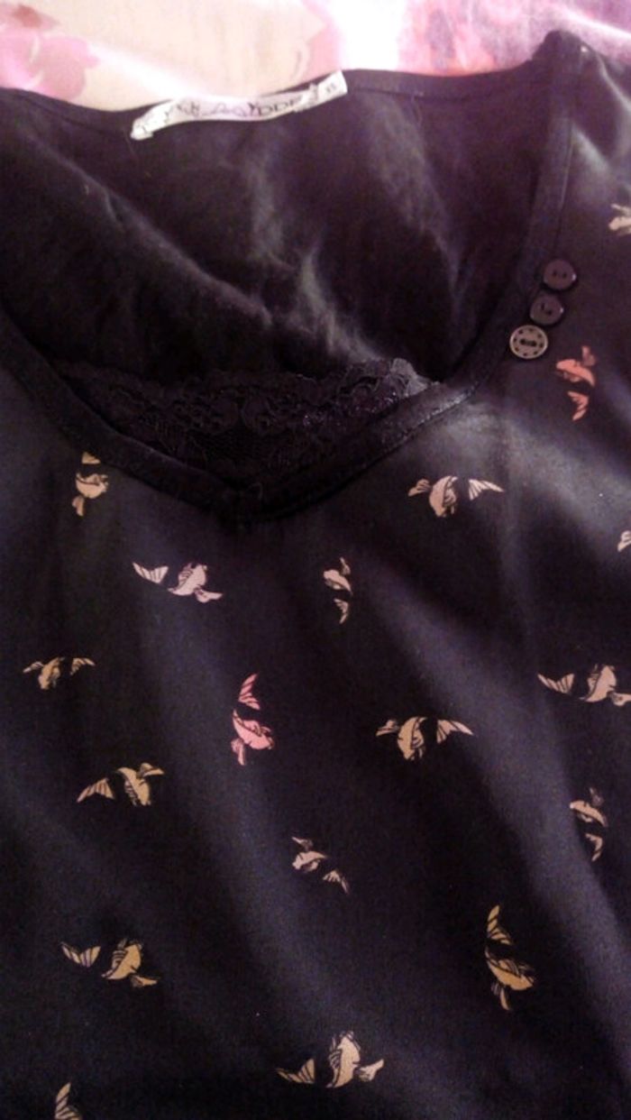 Tee-shirt noir avec oiseaux et feuilles DDP - photo numéro 3