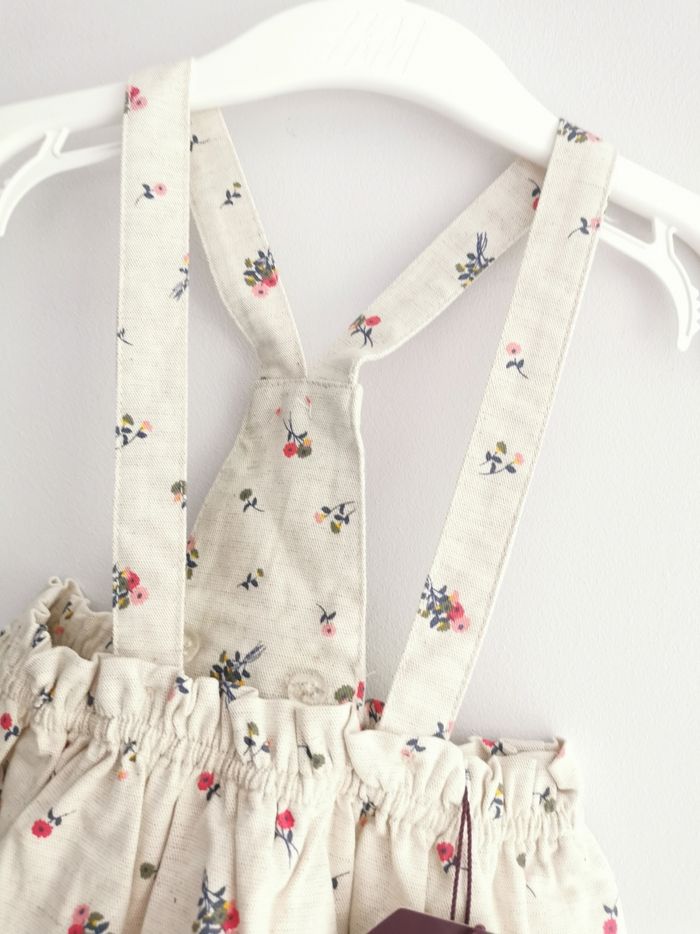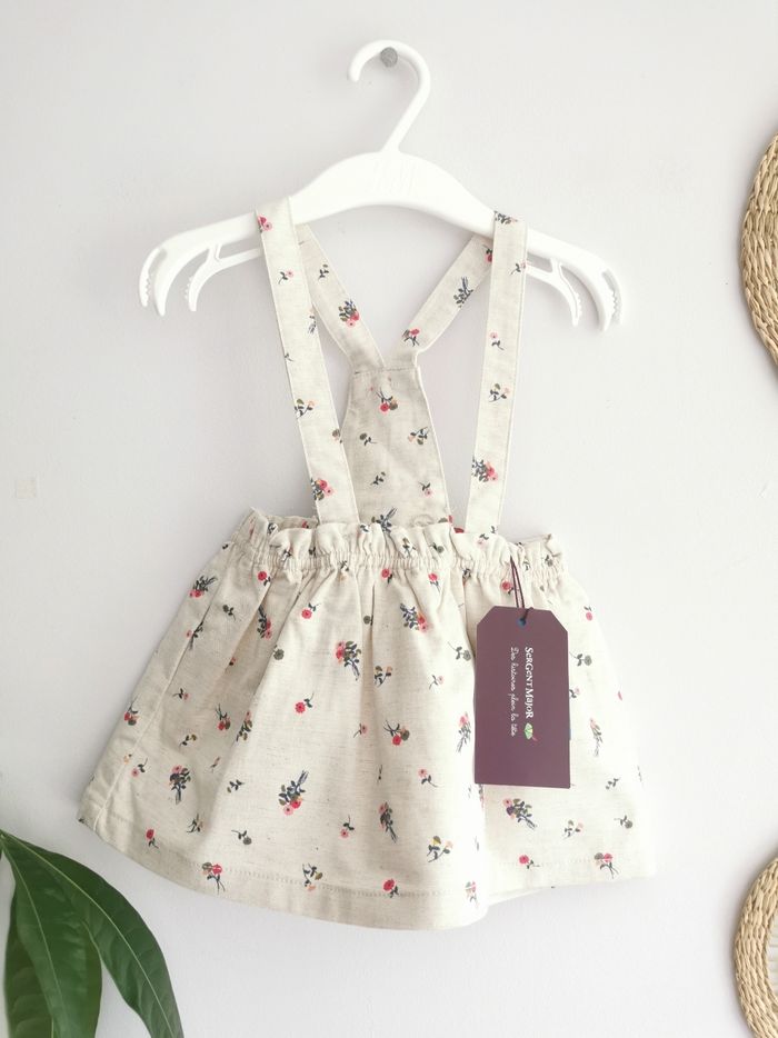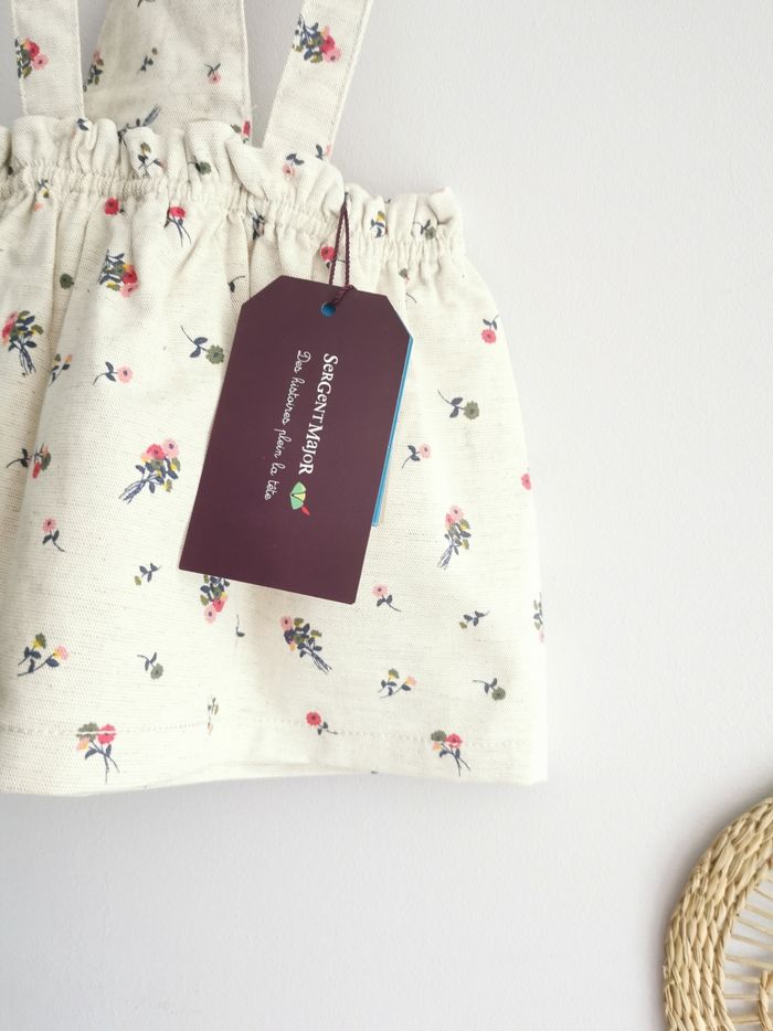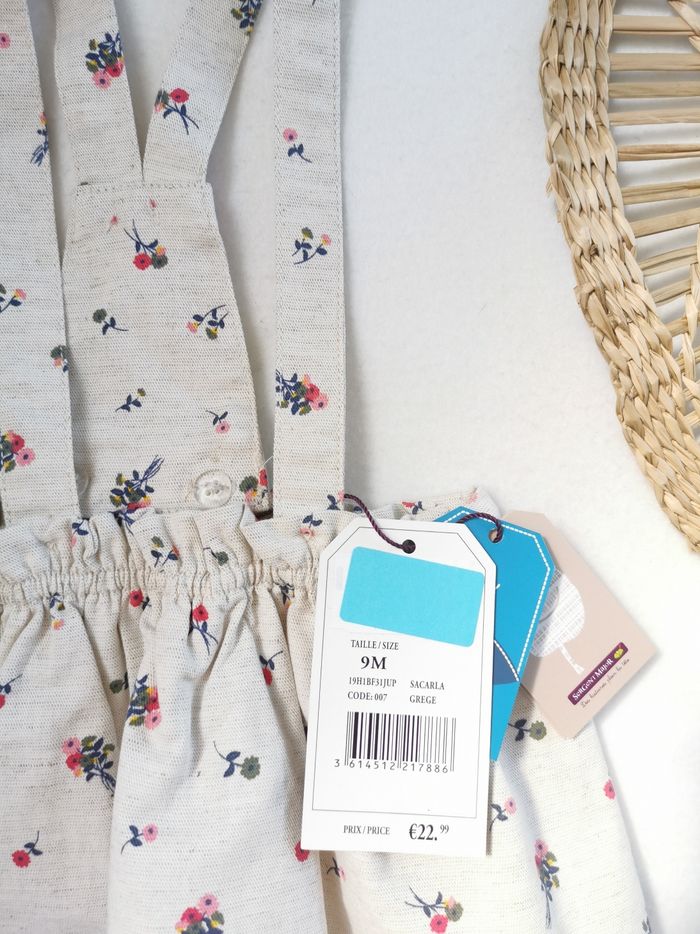 🧒 Jupe salopette 🧒 Sergent Major 🖊️ ÉTAT ✅️: Parfait👌 - Avec étiquette🏷️ - Jamais portée 🆕 🖊️ DESCRIPTION👗: ▪️Taille 9 Mois - 71 cm ▪️Matière: 84% coton - 15% lin - 2% elasthanne ▪️Doublure: 100% coton ▪️Taille elastiquée ▪️Bretelles amovibles avec petit nœud 🎀 décoratif dans le dos ▪️Imprimé fleuri 💐💐💐 ▪️Couleur: Grège 💰Prix boutique: 22.99€ 💚