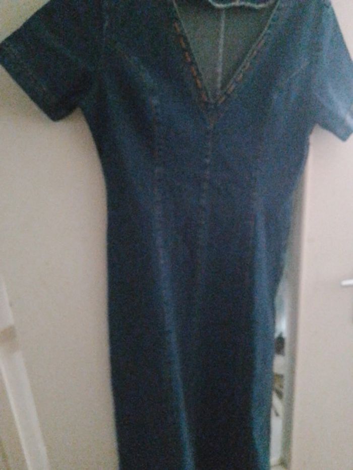Neuve robe longue en jeans cintrée Fendue un peu à l arrière pour l aisance lors de la marche Longueur 124. Aisselles 43