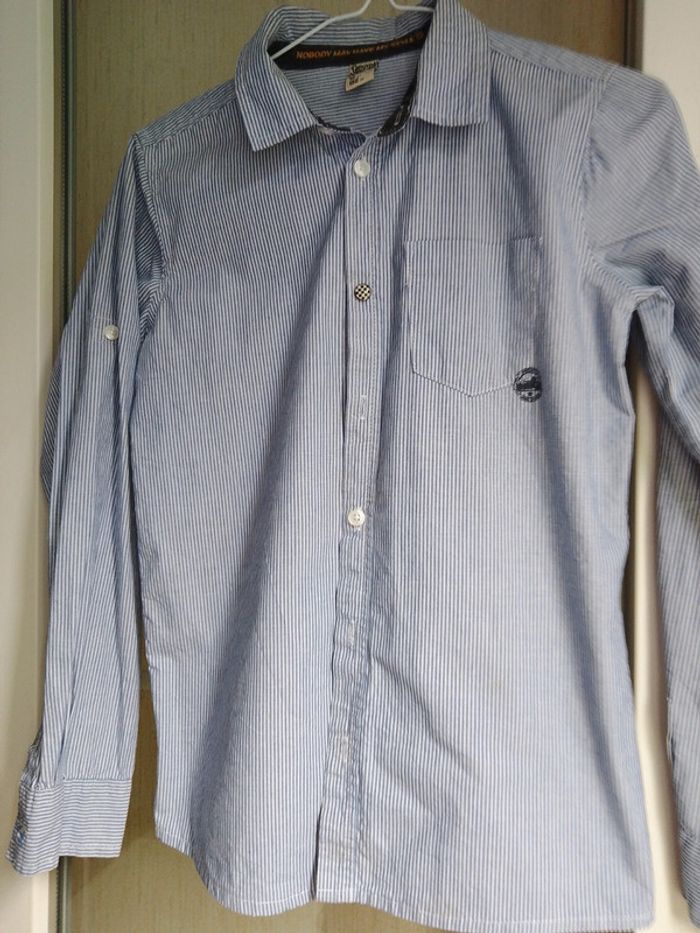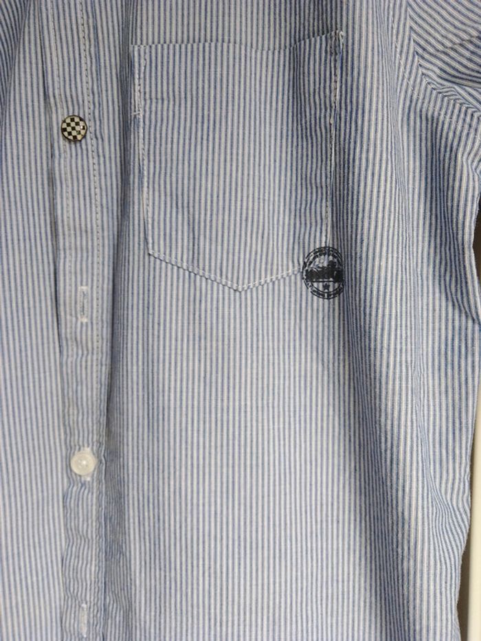 Excellent état Manches longues. Rayures fines bleu blanc Petits détails sympas bouton pression,logo imprimé En coton. 11/12 ans