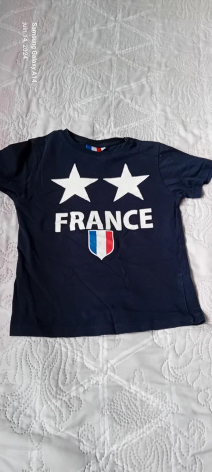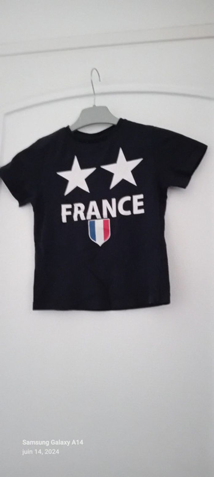 Tee-shirt manches courtes en coton flocage France et blason tricolore avec deux étoiles idéal pour les supporters de football juste porté une ou deux fois en très bon état juste un peu froissé #midole #midolegarçon #midolesport #midoleenfant #midolegarçon6ans #midolefoot #teeshirtfrance #teeshirtdefoot #equipedefrance
