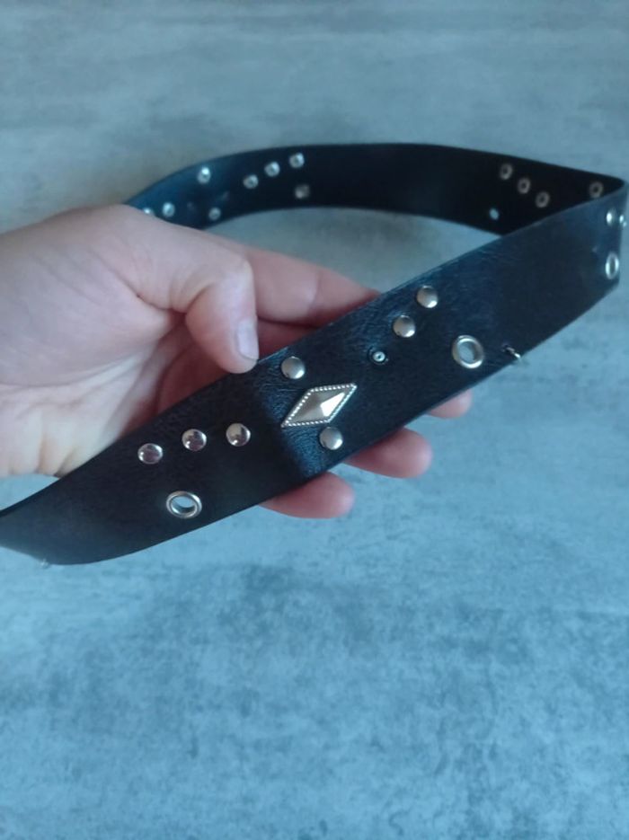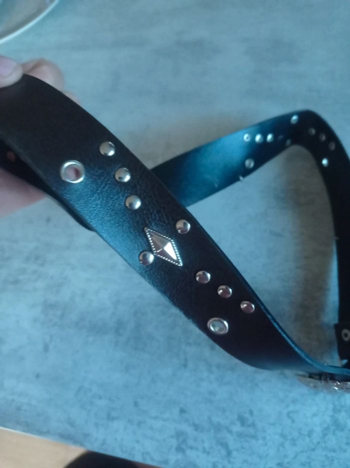 Ceinture marron foncé, presque noir, elle a quelques défauts voir photo.