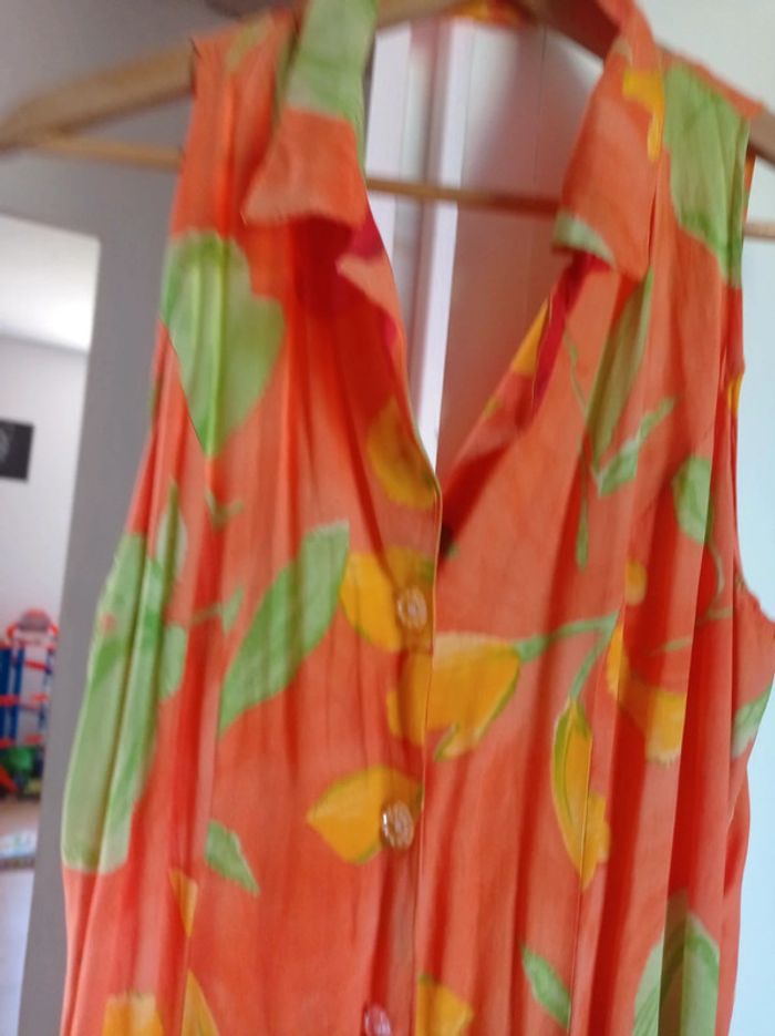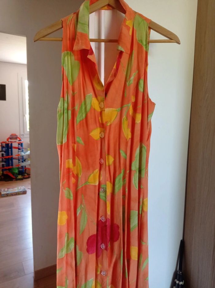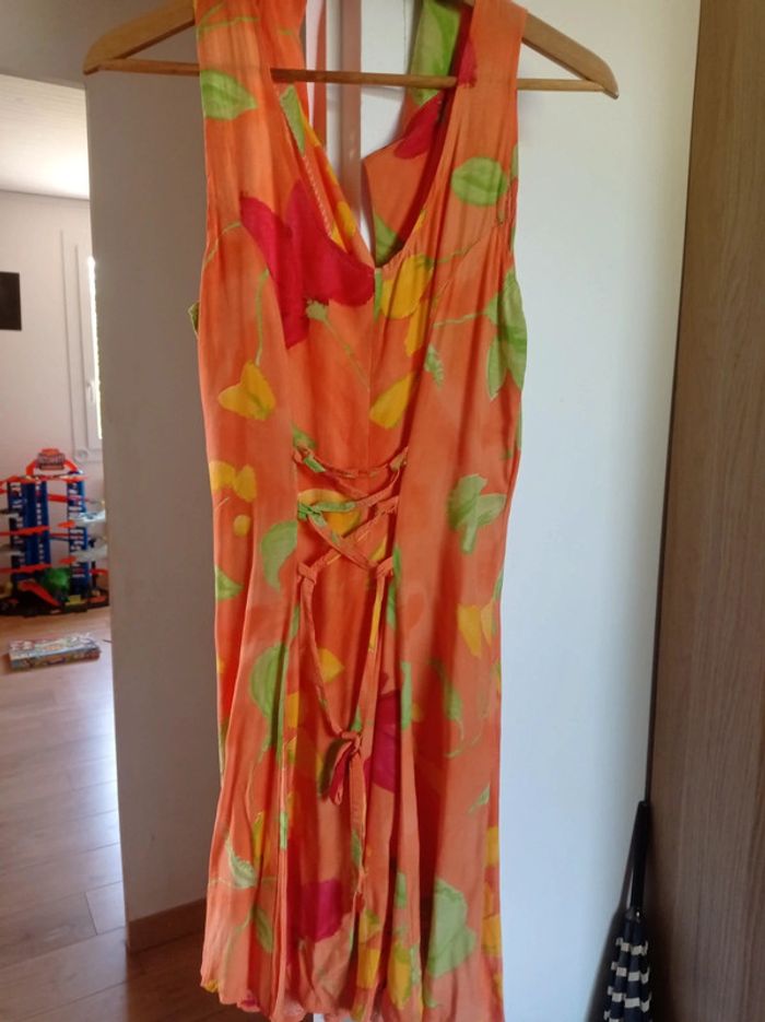 Robe fleuri orange petites taches sur le côté voir dernière photo taille 38/40