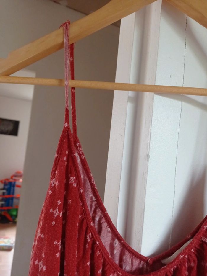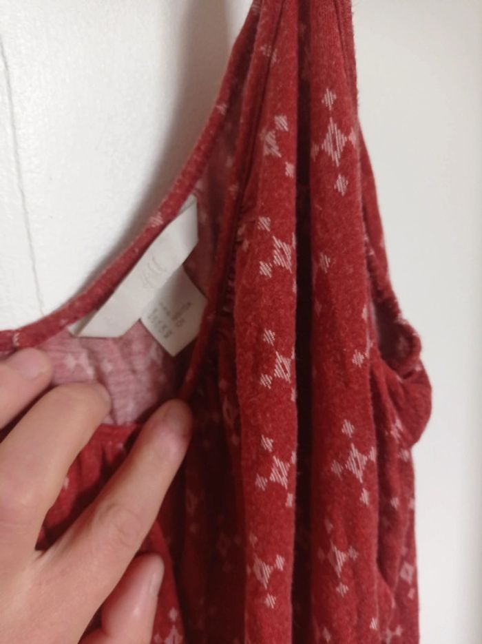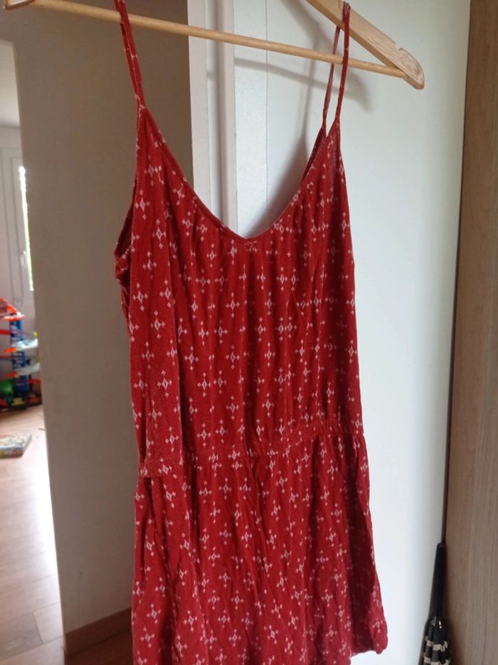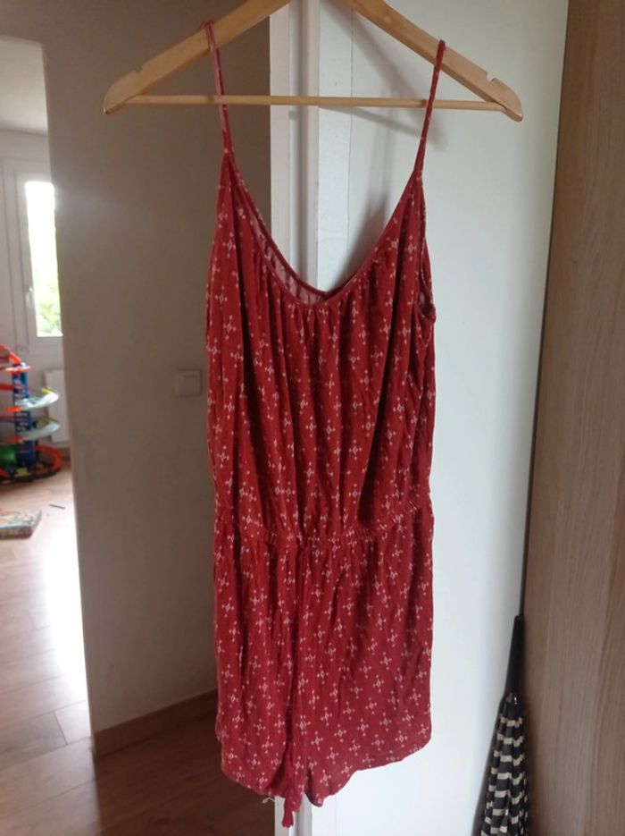 Combi short marque h&m couleur rouille il y a la bretelle qui est a recoudre voir deuxième photo ça ne gêne pas pour le porter mais ça sera a recoudre