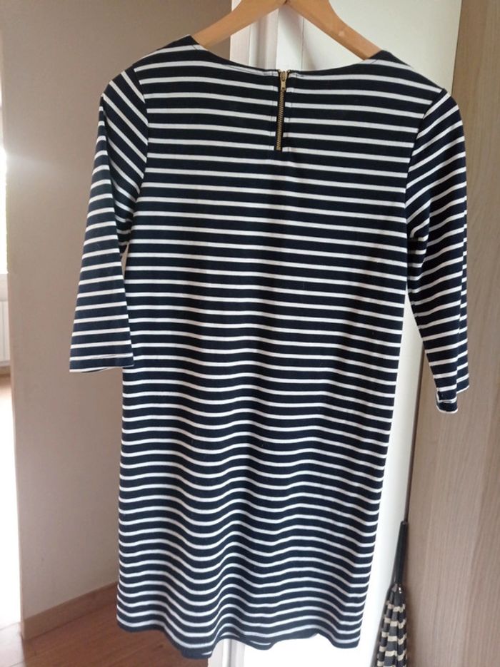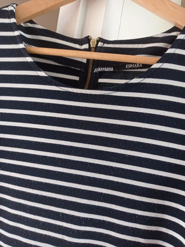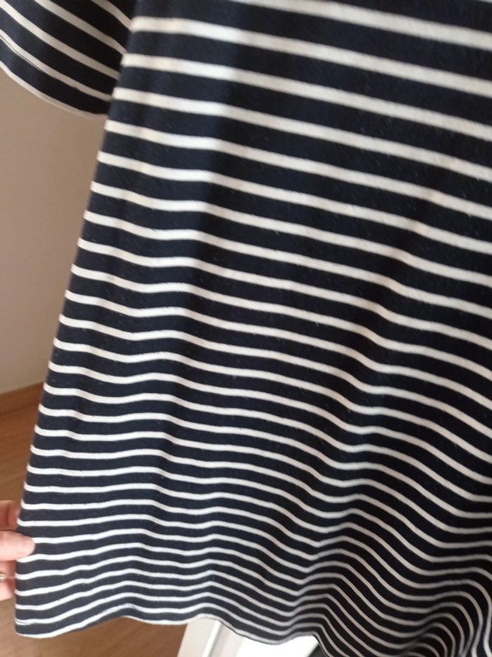 Robe trois quart marque esmara taille 34/36 mais je fais du 36 et elle me va très bien, elle a des petites bouloches voir photos mais sinon pas de taches ni de trous