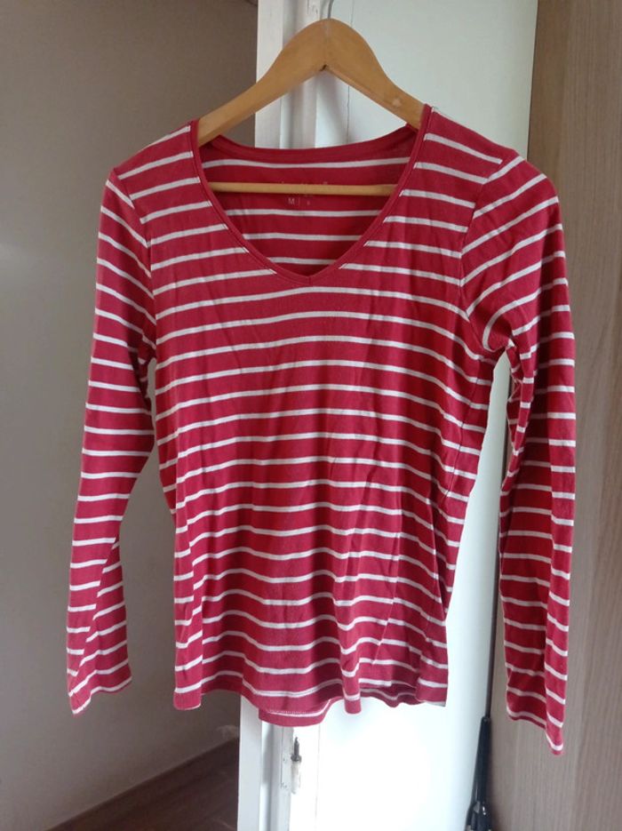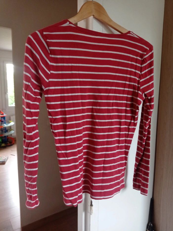 T shirt manche longues taille m marque Auchan rouge et blanc