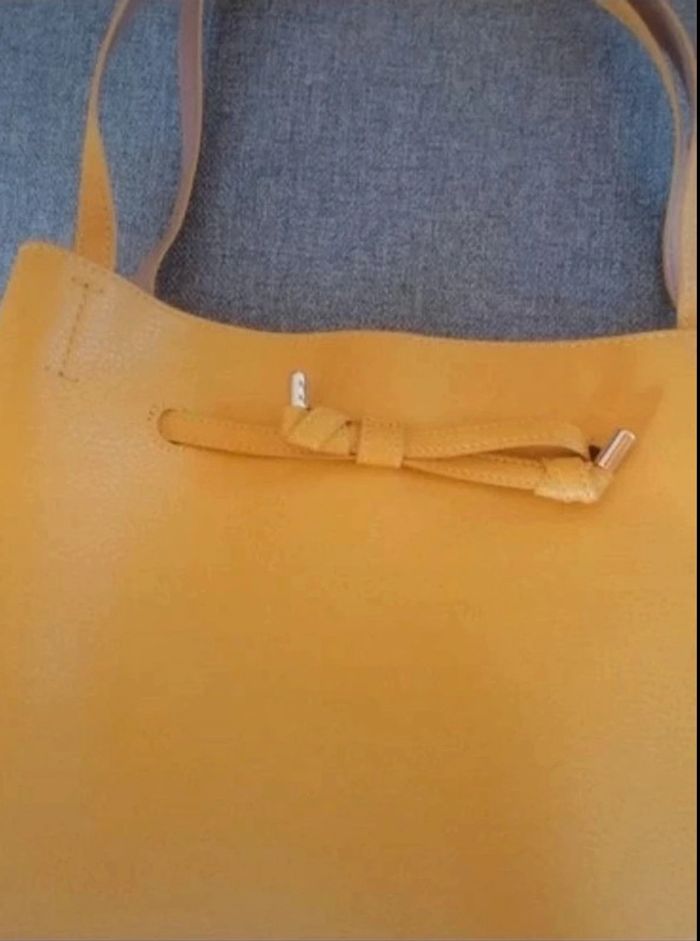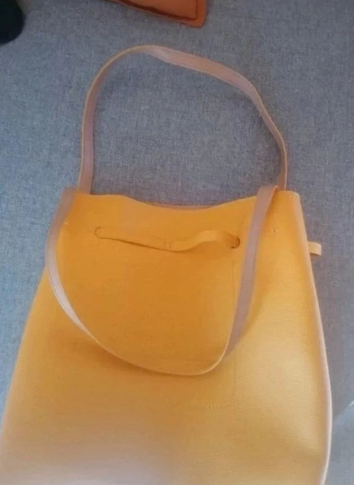 Sac jaune h&m jamais utilisé juste rester dans dressing sur la dernière photo vous pouvez voir qu'il y a comme une décoloration sur le dessous du sac mais je les acheté comme ça je pense que c'est fais exprès mais je préfère le préciser #titiethanfemmes #titiethanfemmem #titiethanfemmeL #titiethanbijoux #titiethanbijoux Envoi rapide