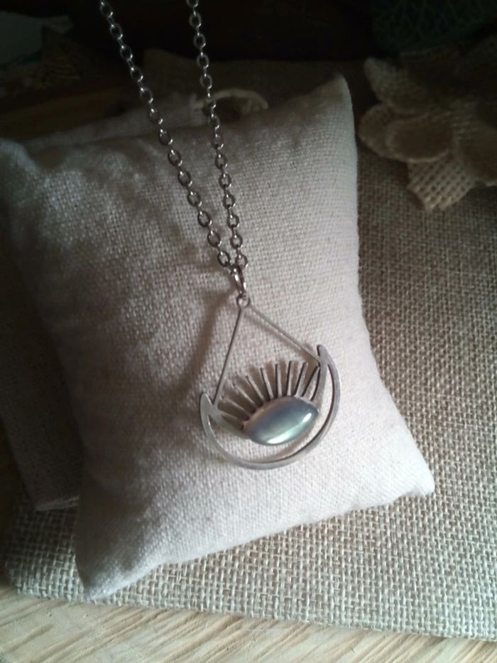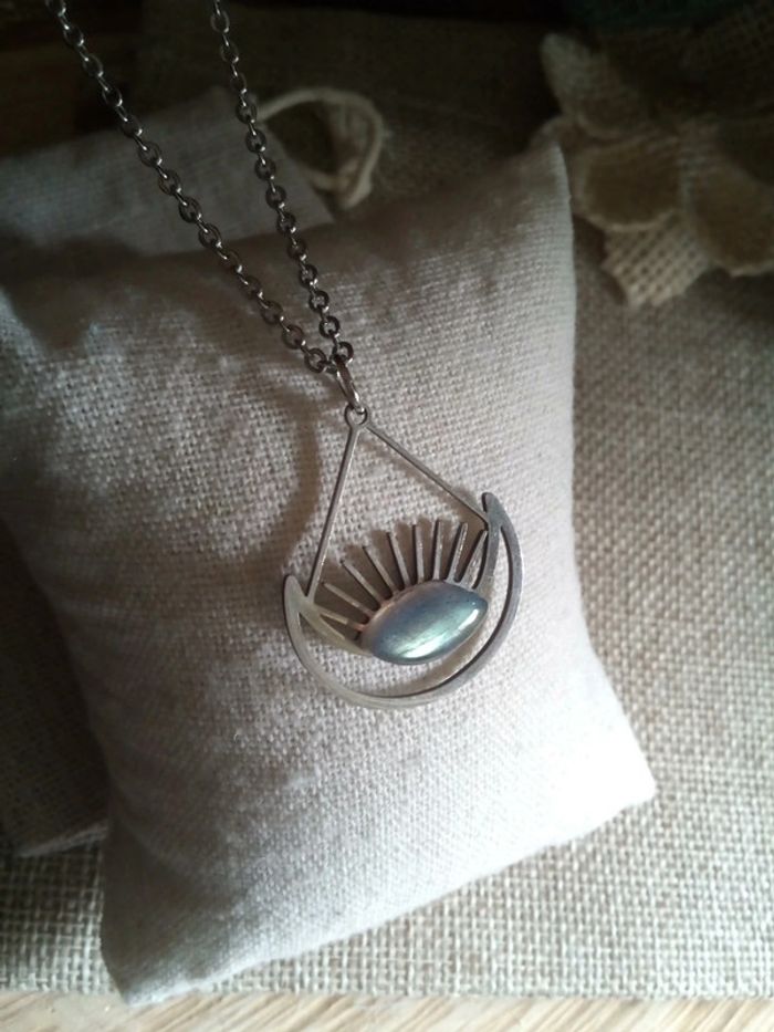 Collier oeil et pierre de labradorite naturelle - photo numéro 1