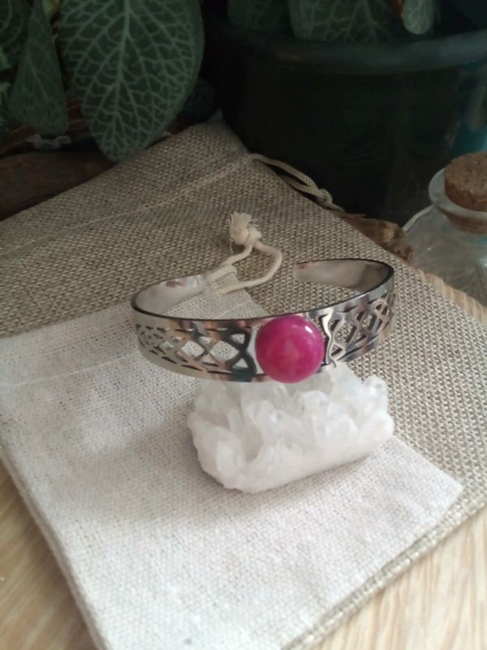 Bracelet magie celtique et pierre agate rose naturelle - photo numéro 2